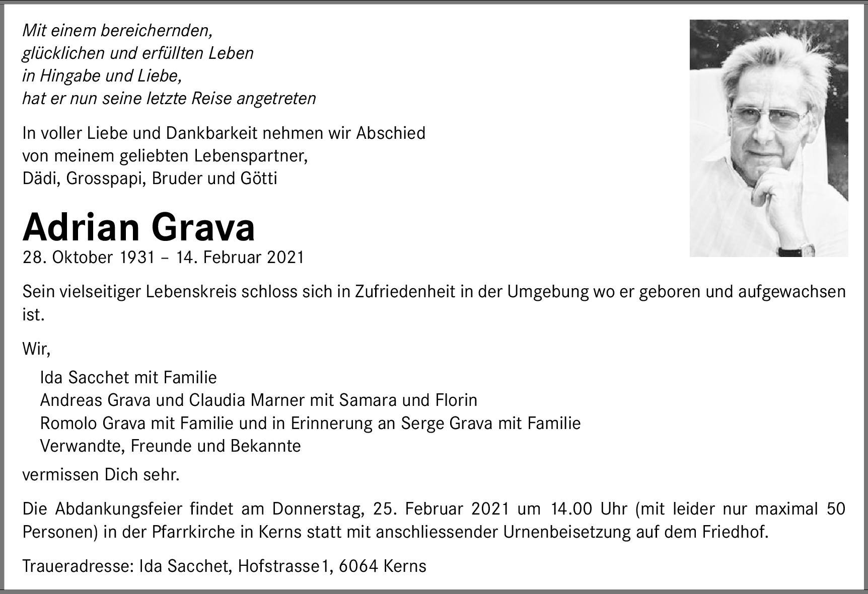 Möchten Sie über neue Todesanzeigen und Kondolenzen für diesen Verstorbenen informiert werden?
