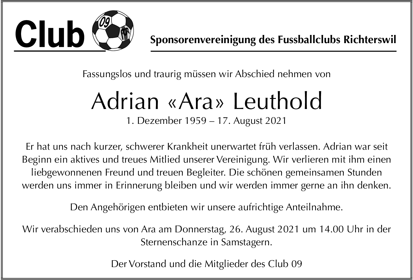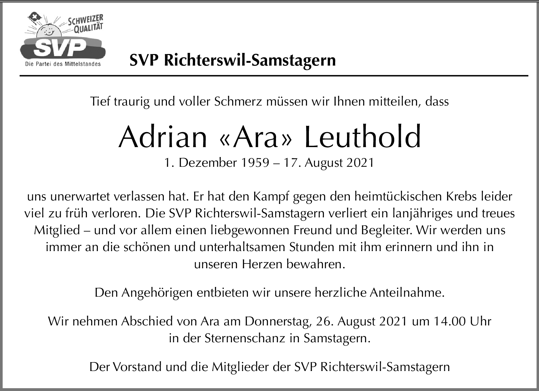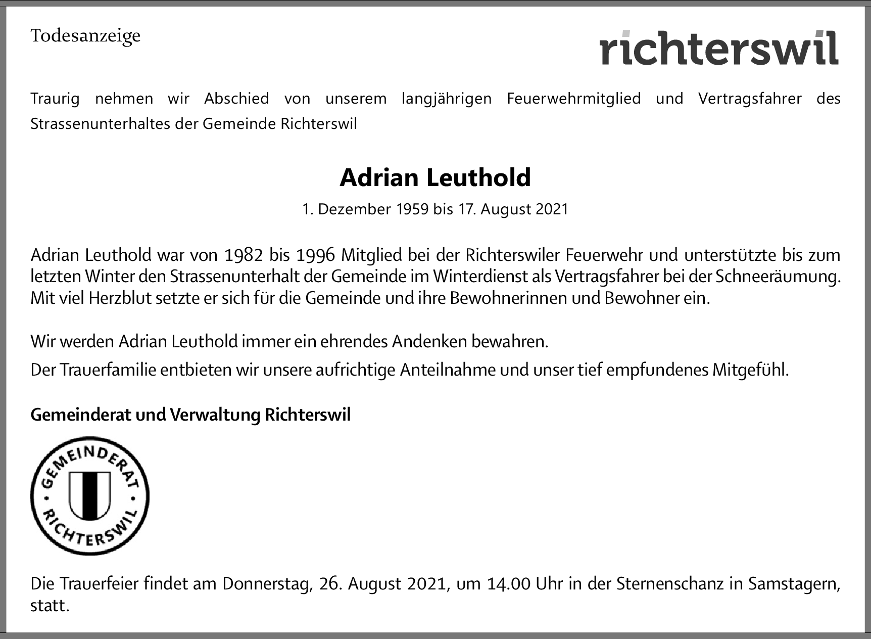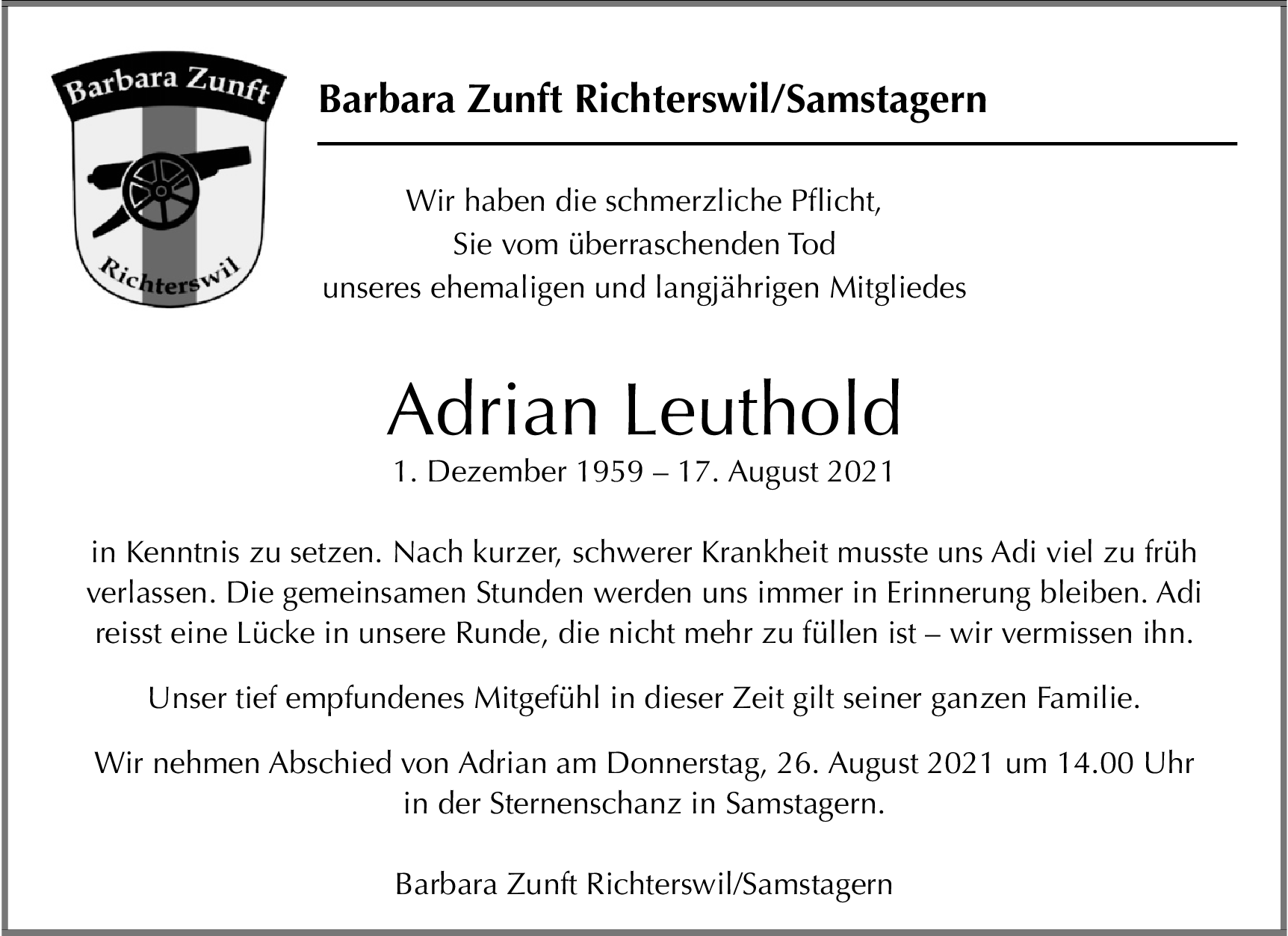 Möchten Sie über neue Todesanzeigen und Kondolenzen für diesen Verstorbenen informiert werden?