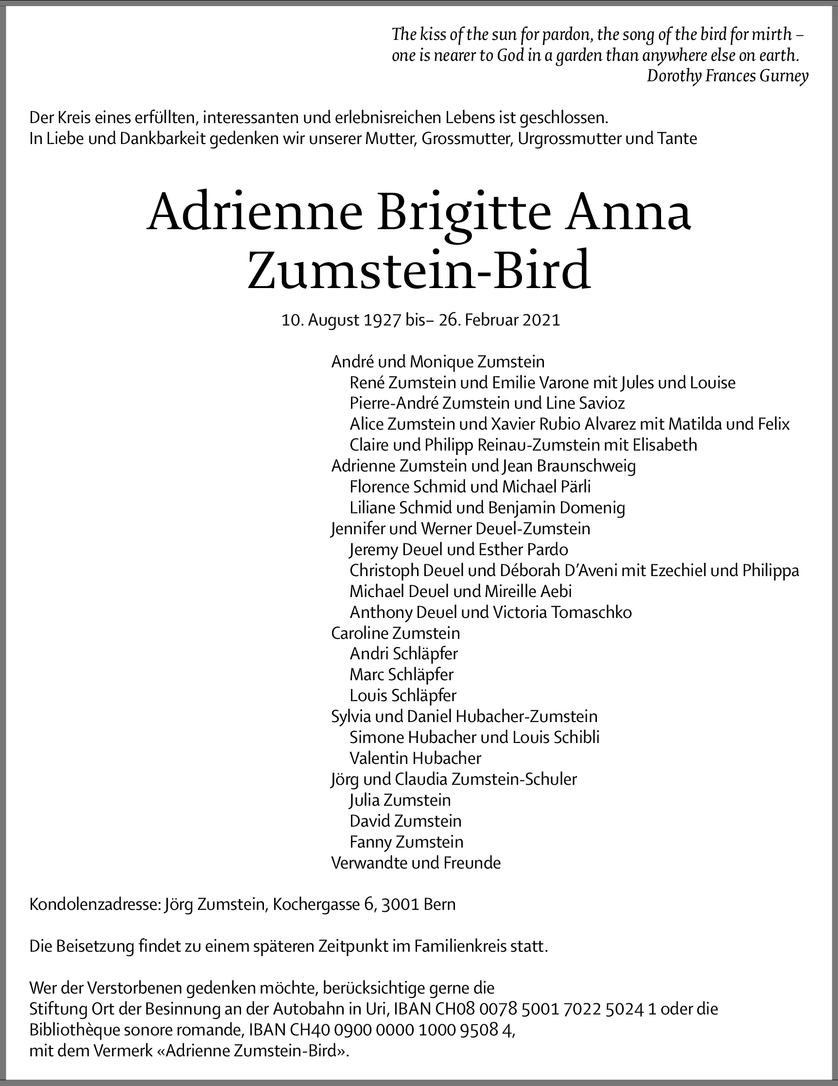 Möchten Sie über neue Todesanzeigen und Kondolenzen für diesen Verstorbenen informiert werden?
