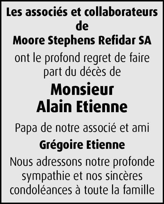 C'est avec tristesse que j'ai appris la disparition de Alain. Je souhaite m'associer à votre douleur en ce jour difficile. Alain était un mentor, dévoué pour le bien-être de ses amies. Nous perdons à la fois un collaborateur et un ami précieux. N'ayant pu être présent aux obsèques, je tenais à présenter à votre famille, mes condoléances les plus sincères en ces jours douloureux; soyez assurés de toute ma sympathie durant ces moments.