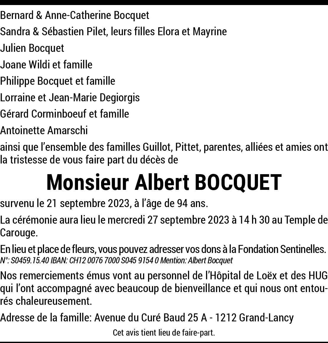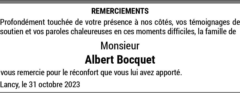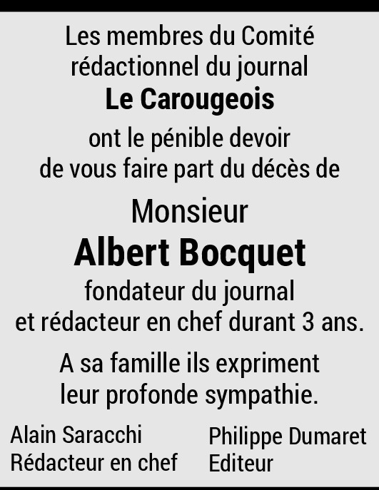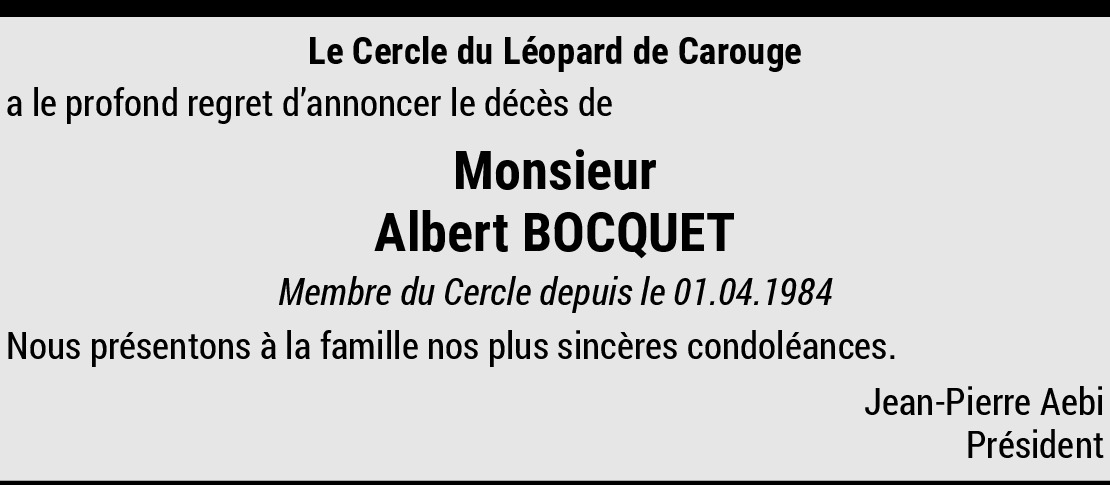 26.09.2023 Melden C’est avec beaucoup de tristesse que nous avons appris le décès de monsieur Bocquet. Nous garderons un merveilleux souvenir de lui. Von Mudry