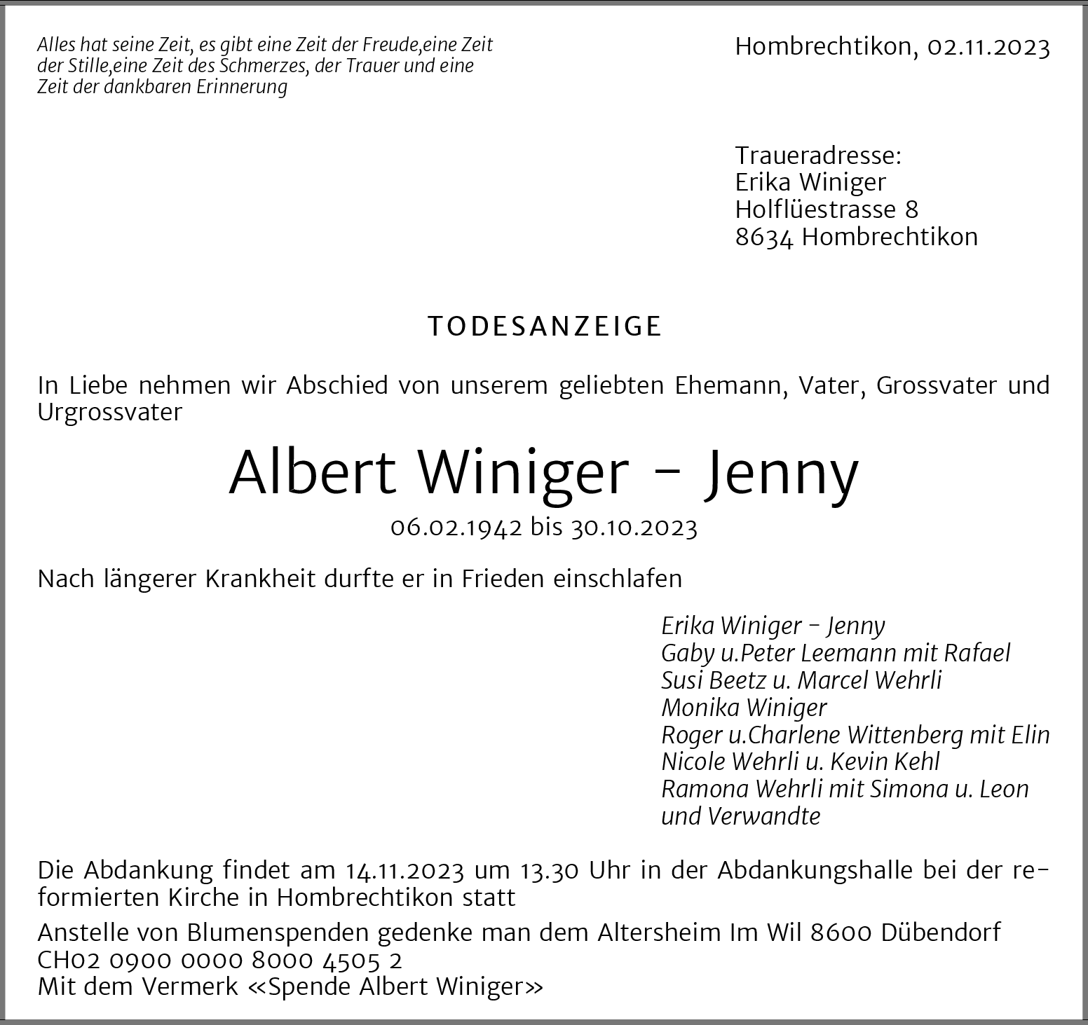 Möchten Sie über neue Todesanzeigen und Kondolenzen für diesen Verstorbenen informiert werden?