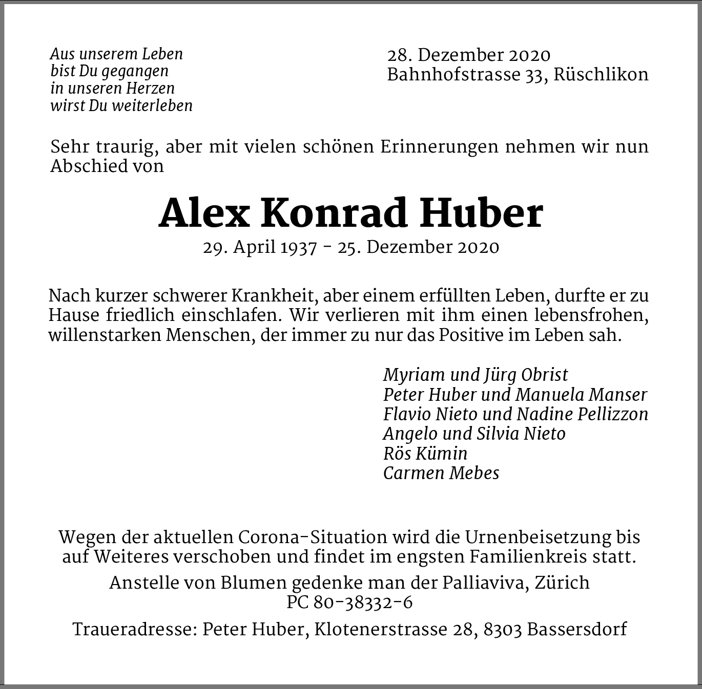 Möchten Sie über neue Todesanzeigen und Kondolenzen für diesen Verstorbenen informiert werden?