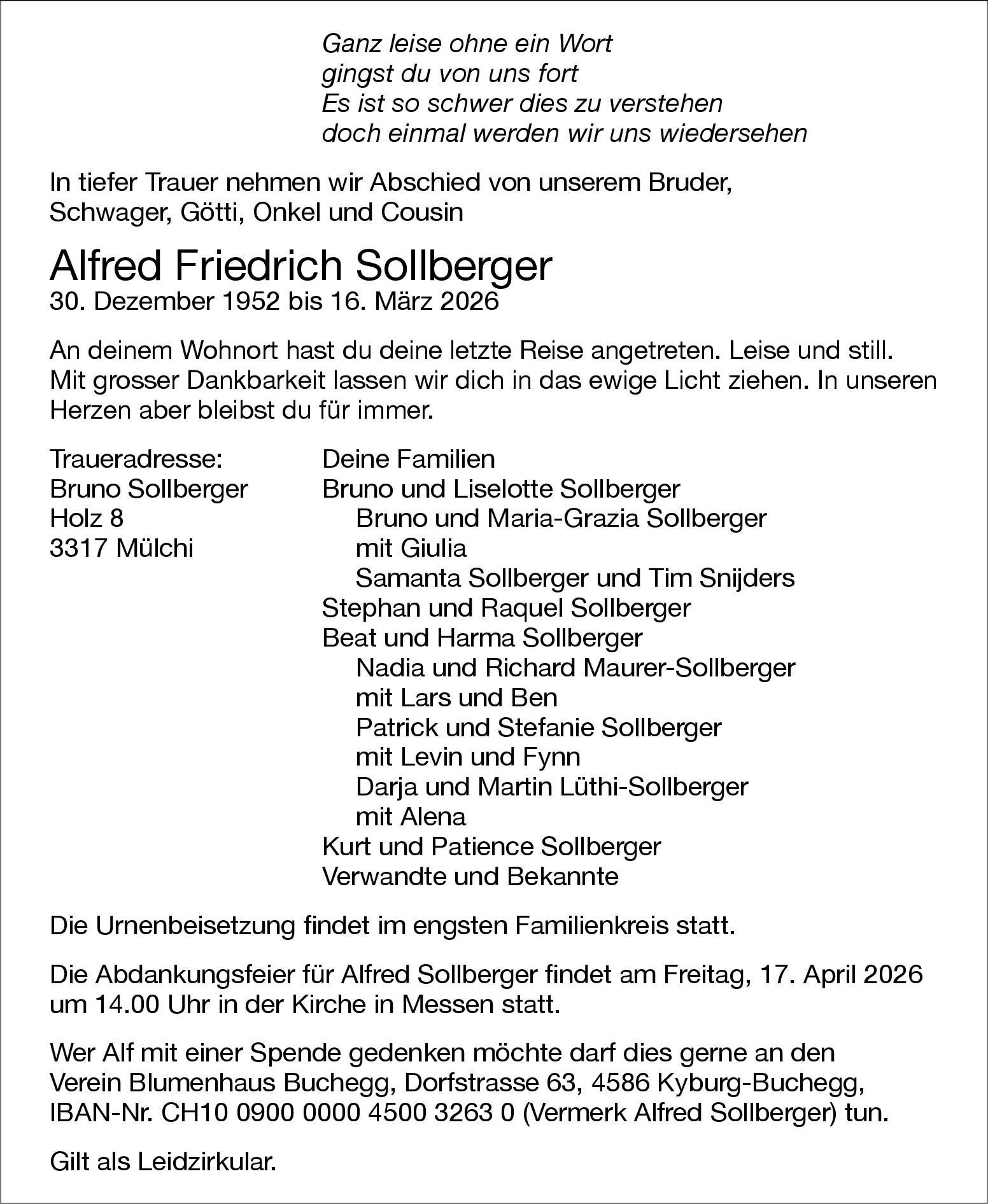 Möchten Sie über neue Todesanzeigen und Kondolenzen für diesen Verstorbenen informiert werden?