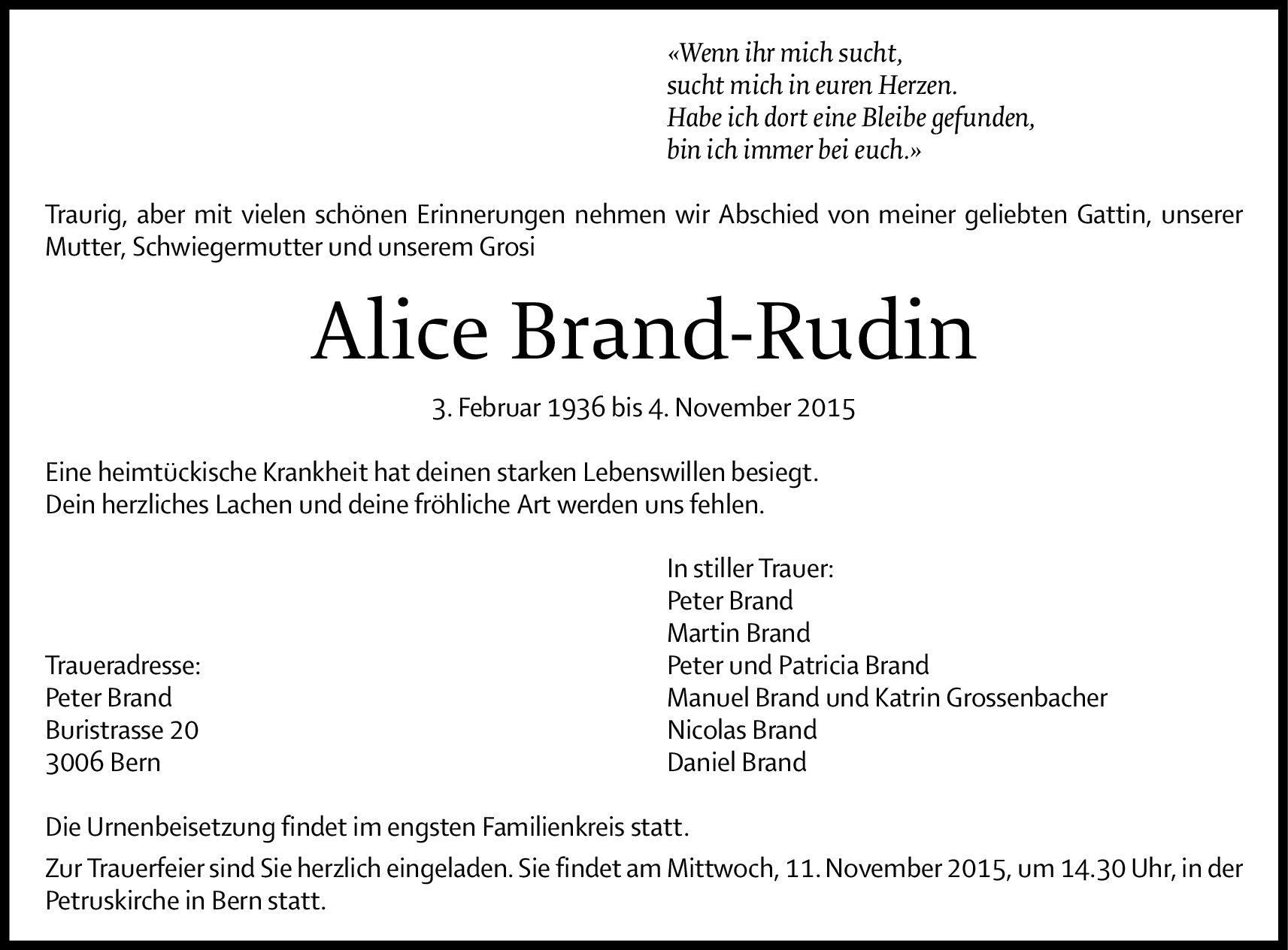 Möchten Sie über neue Todesanzeigen und Kondolenzen für diesen Verstorbenen informiert werden?
