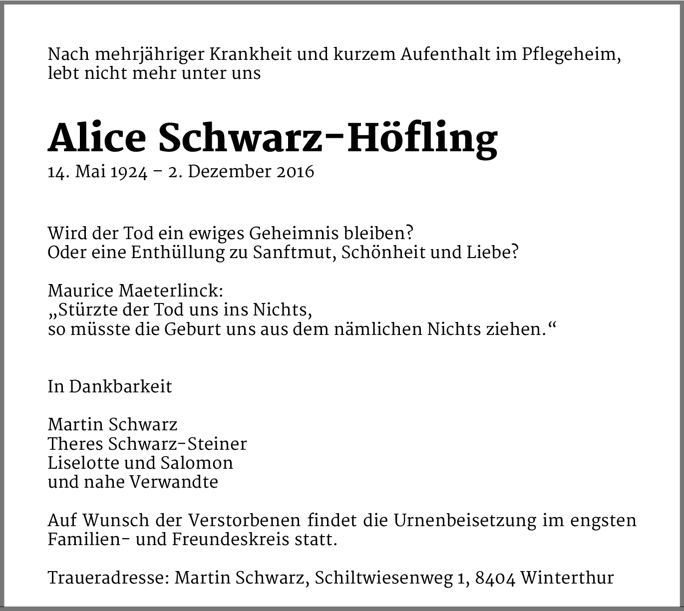 Möchten Sie über neue Todesanzeigen und Kondolenzen für diesen Verstorbenen informiert werden?