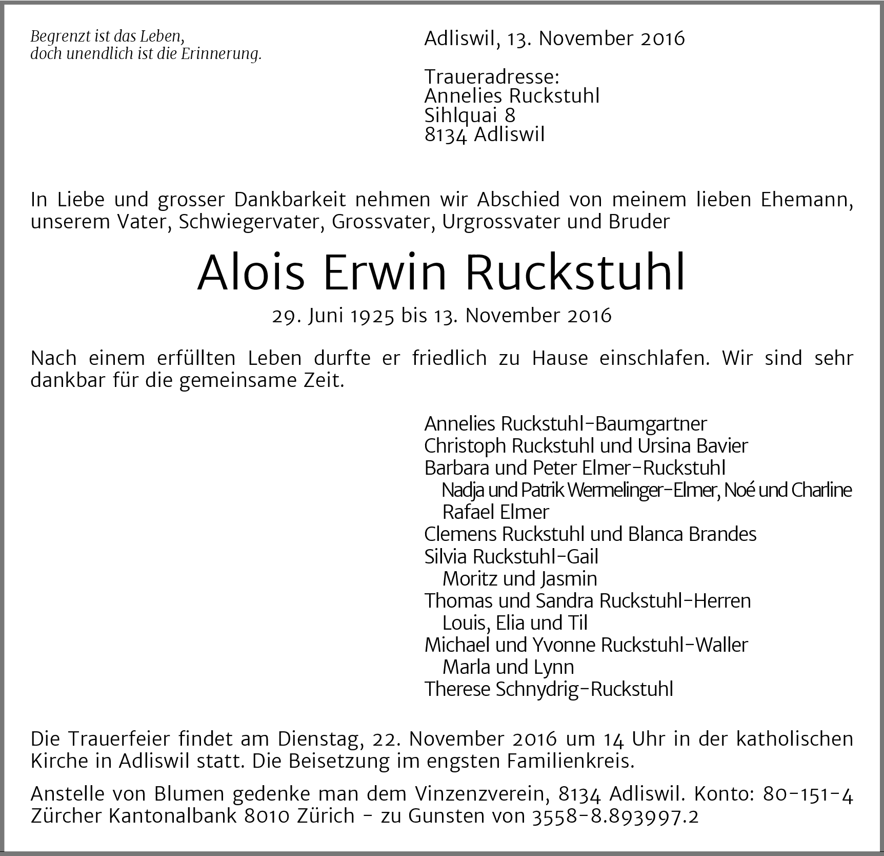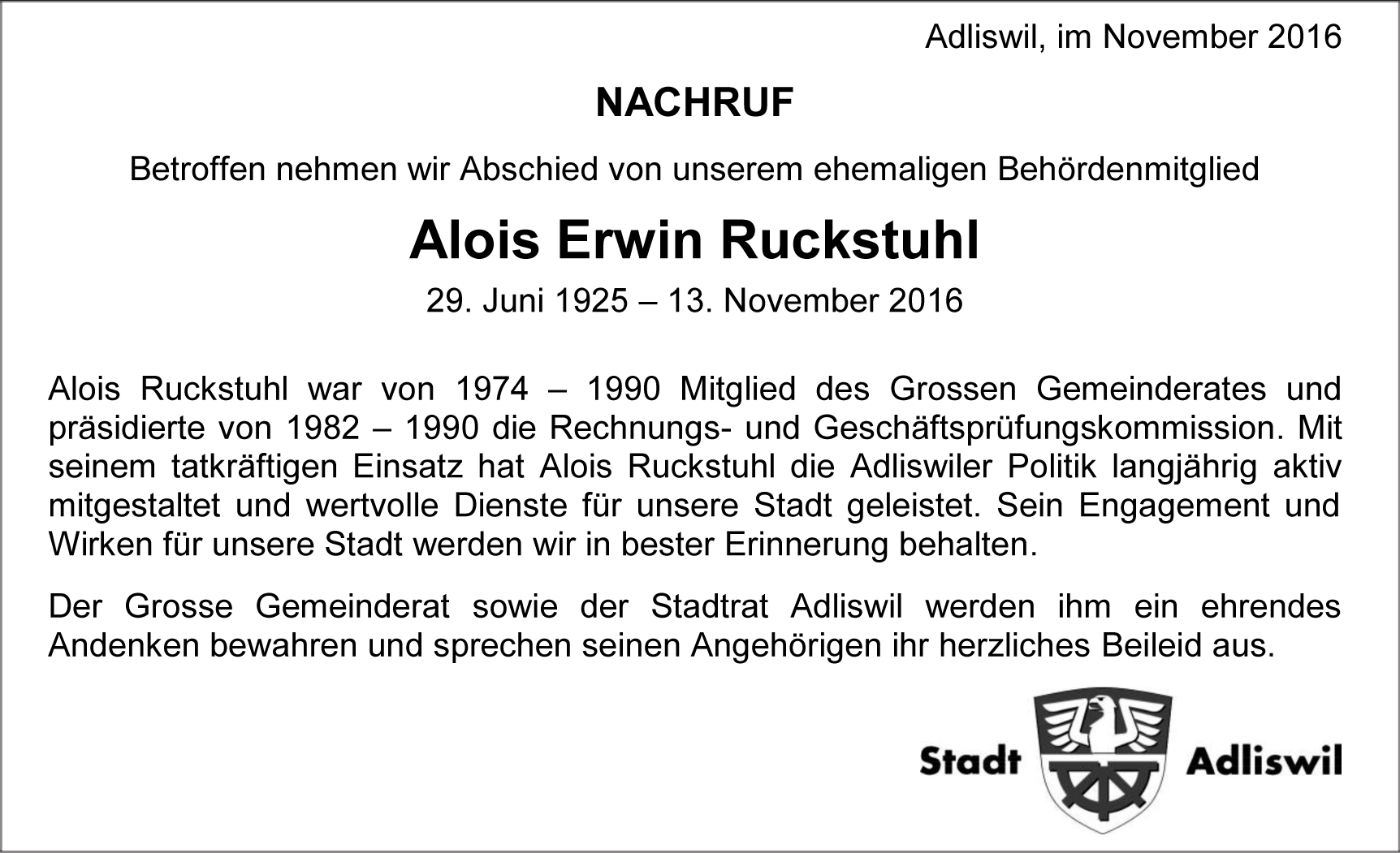 Möchten Sie über neue Todesanzeigen und Kondolenzen für diesen Verstorbenen informiert werden?