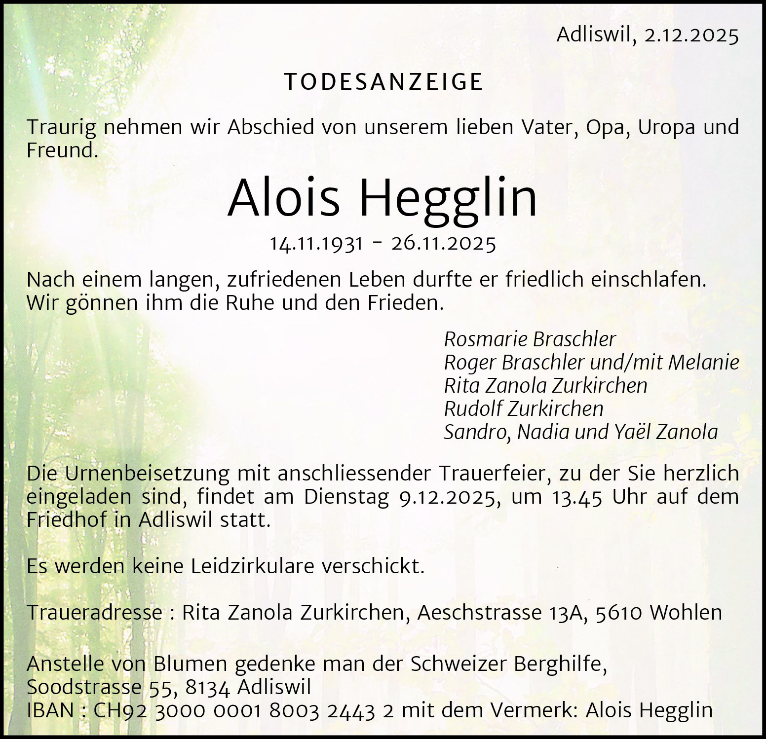 Möchten Sie über neue Todesanzeigen und Kondolenzen für diesen Verstorbenen informiert werden?