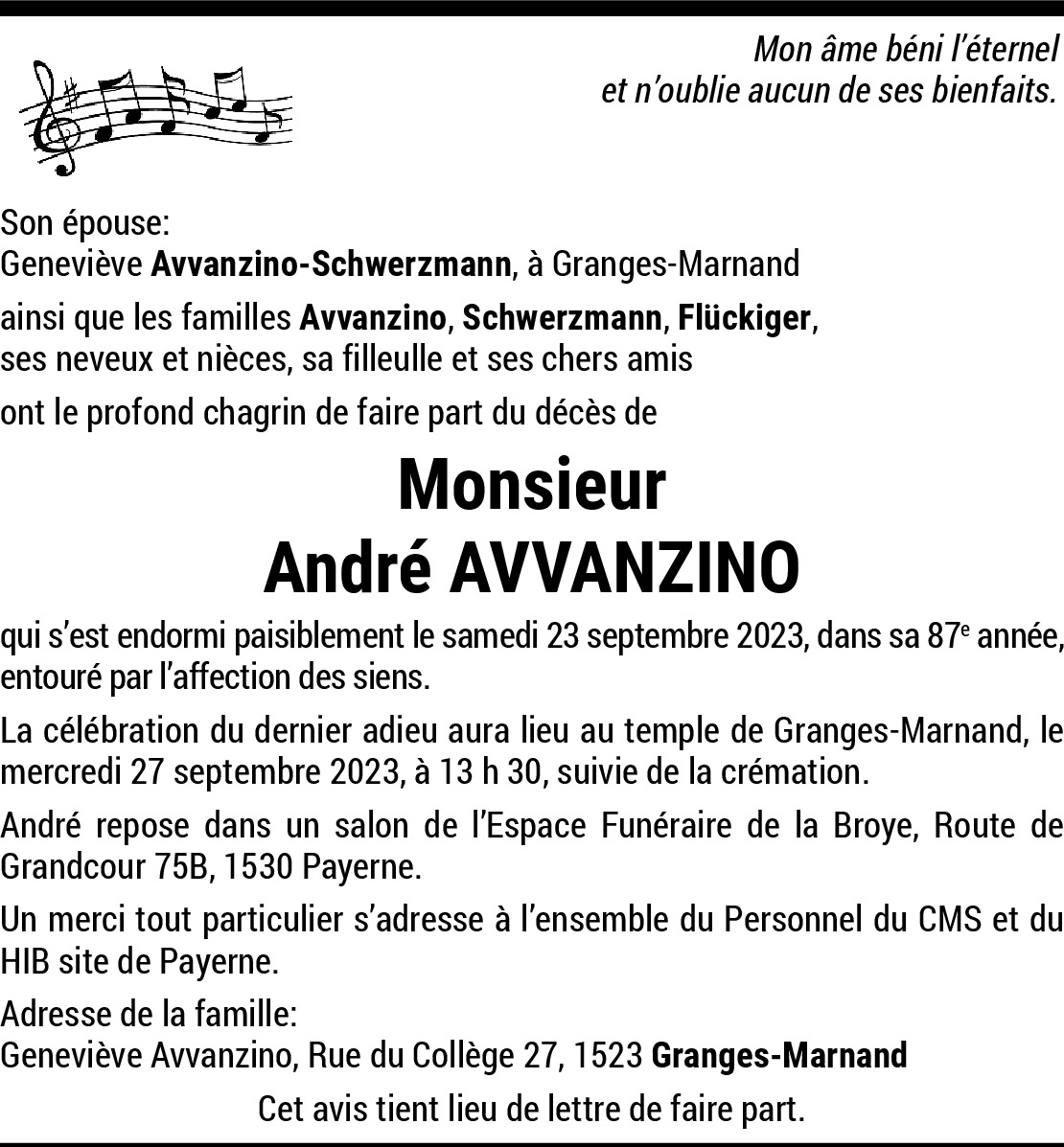 30.09.2023 Melden Comme la vie est bizarre, on se perd de vue et on ouvre un journal et voilà. Je suis désolée d'apprendre le décès de ton mari. Je suis de tout coeur avec toi. Mes prières t'accompagnent. Bernadette Von Liévaux