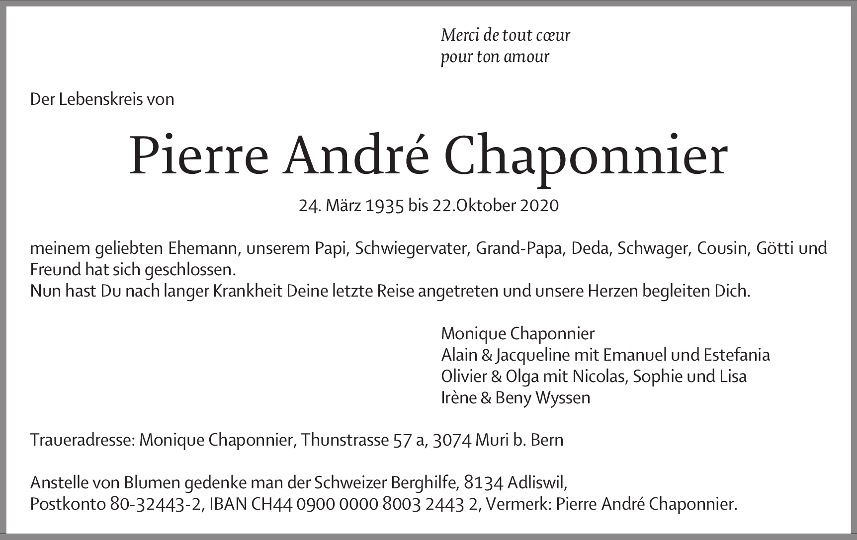 Möchten Sie über neue Todesanzeigen und Kondolenzen für diesen Verstorbenen informiert werden?