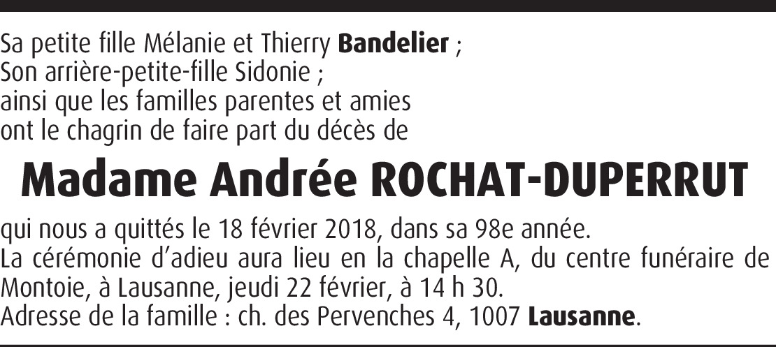 Vor mehr als 4 Jahren Melden A tous les trois nous vous présentons nos sincères condoléances. Que ce mot vous apporte un peu de réconfort dans ce moment où vous devez dire au revoir à Andrée. Avec toute notre amitié. Thierry, Nathalie, Mathilde et Paul-Henri Von Nathalie Hermand