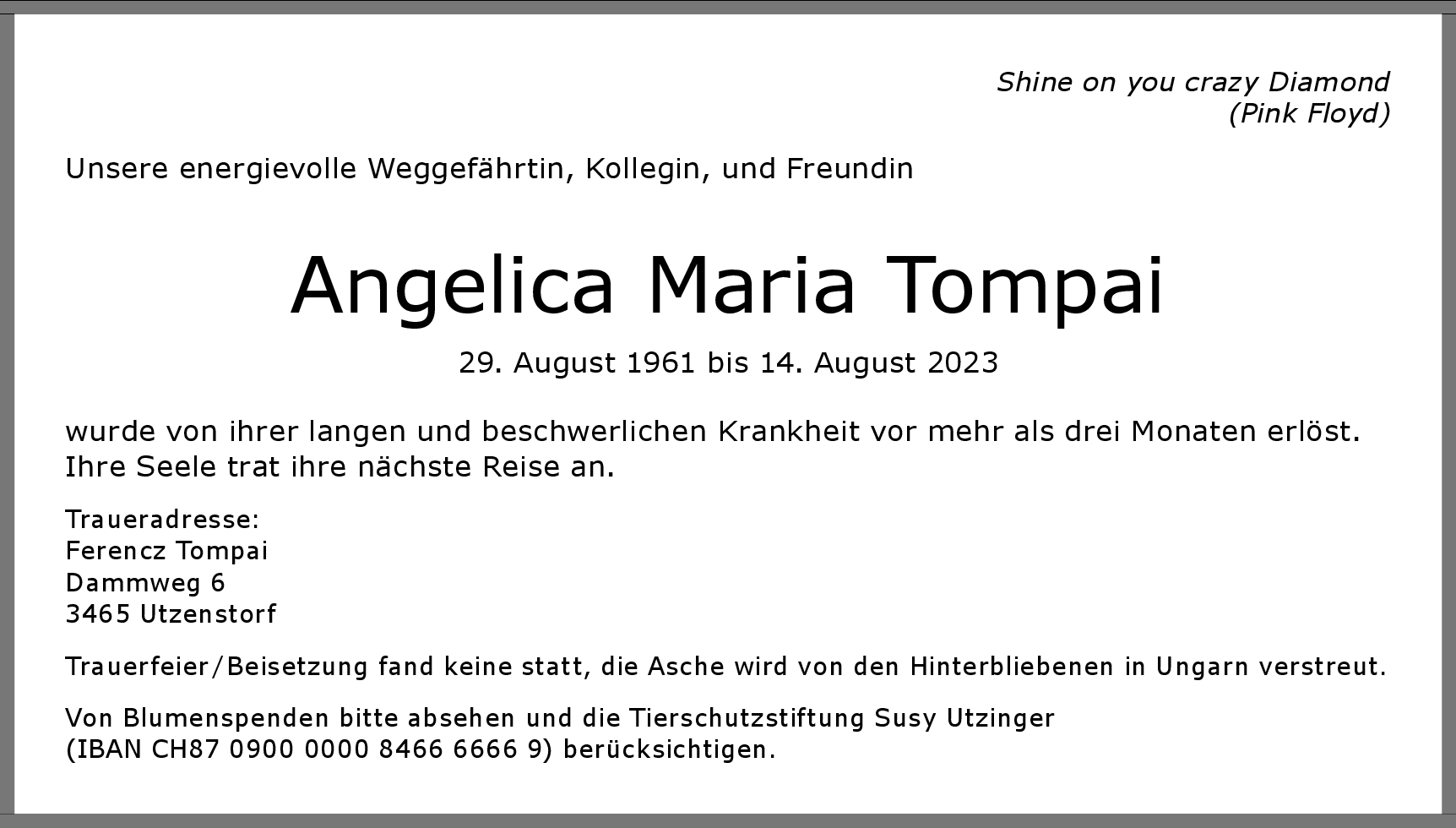Möchten Sie über neue Todesanzeigen und Kondolenzen für diesen Verstorbenen informiert werden?