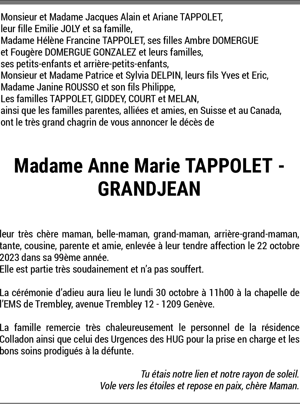 Anne Marie Grandjean - Tappolet