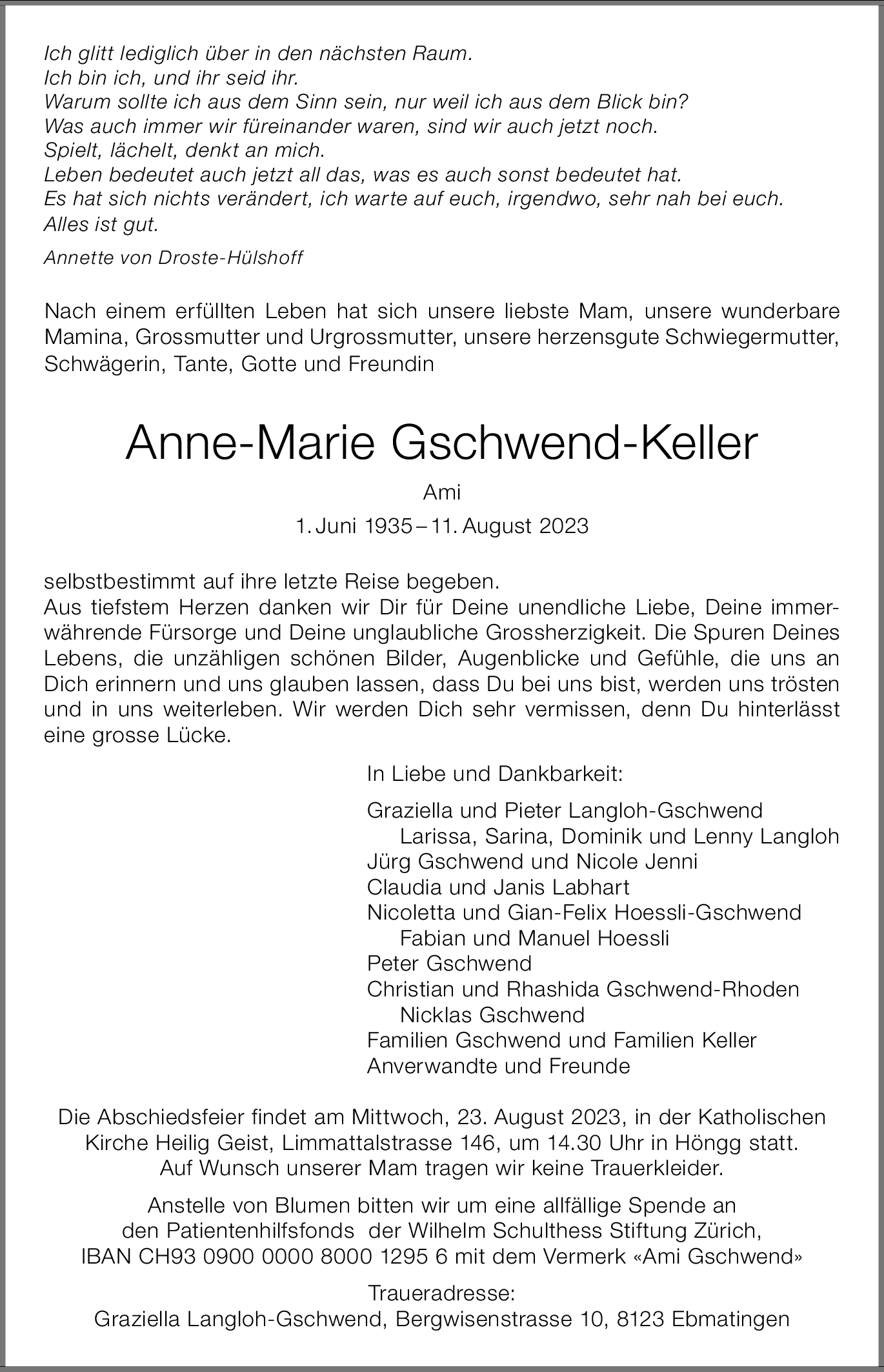 Möchten Sie über neue Todesanzeigen und Kondolenzen für diesen Verstorbenen informiert werden?