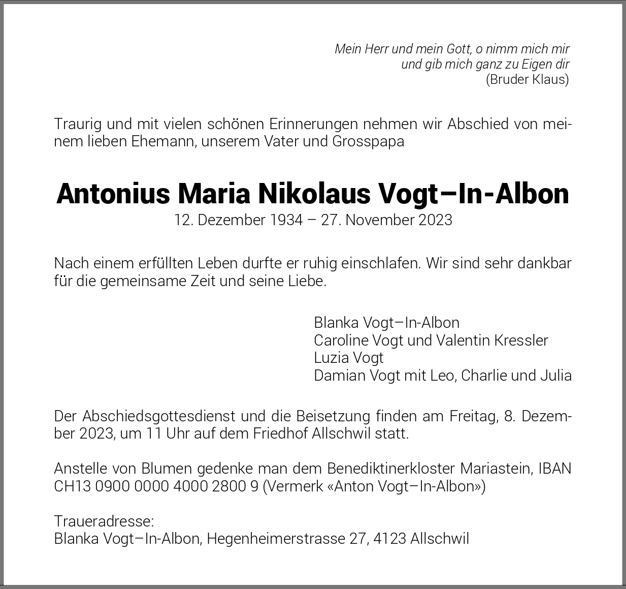 Möchten Sie über neue Todesanzeigen und Kondolenzen für diesen Verstorbenen informiert werden?