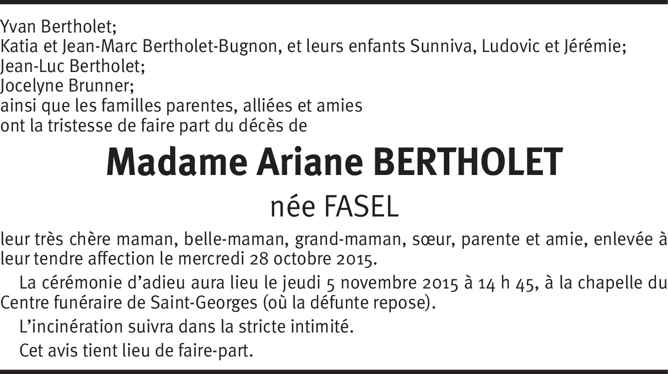 Vor mehr als 4 Jahren Melden Katia et Yvan je pense à vous et à ces années d'enfance partagées à chancy avec Ariane. Toute mon affection. bisous. Von Vincent Chevalley