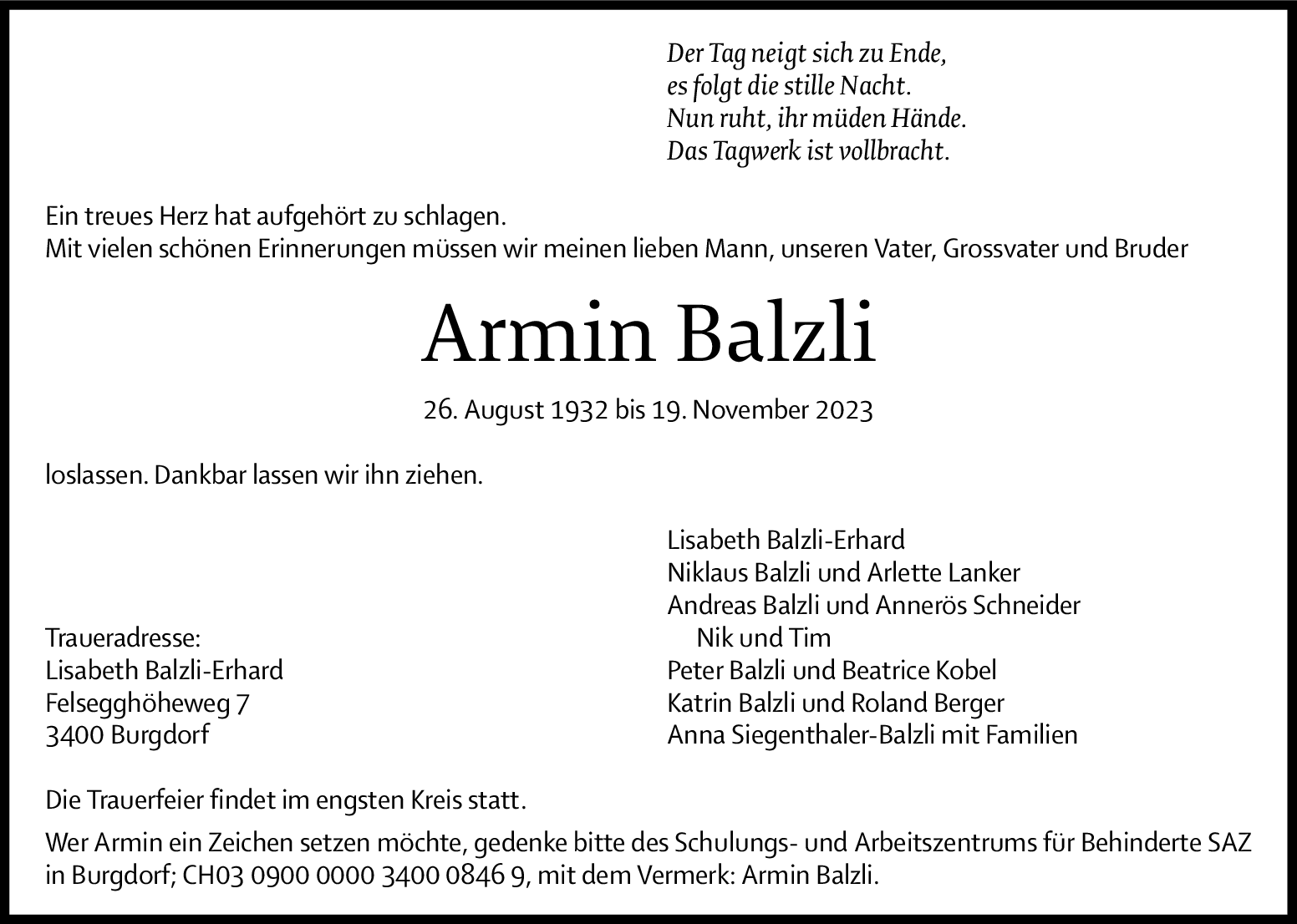 Möchten Sie über neue Todesanzeigen und Kondolenzen für diesen Verstorbenen informiert werden?