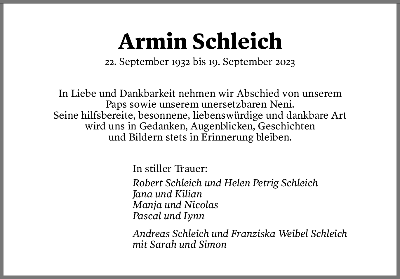 Möchten Sie über neue Todesanzeigen und Kondolenzen für diesen Verstorbenen informiert werden?