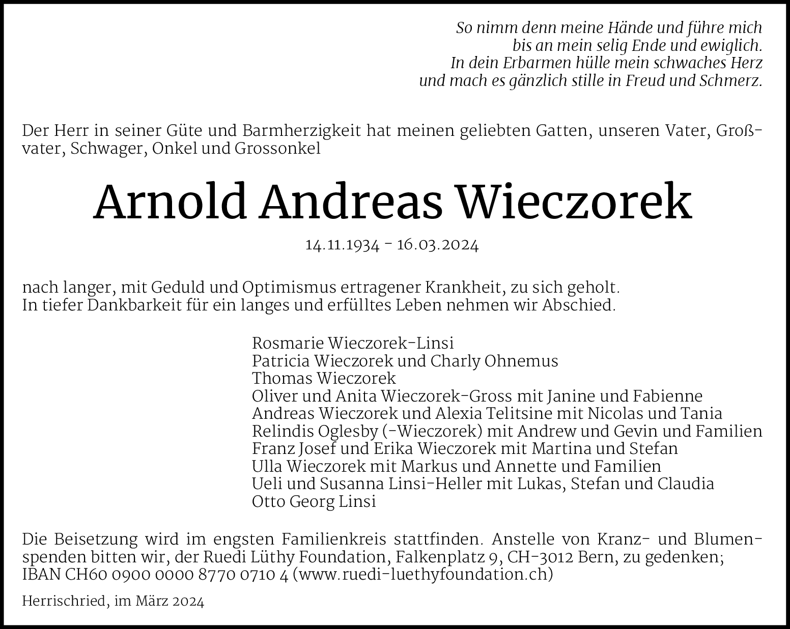 Möchten Sie über neue Todesanzeigen und Kondolenzen für diesen Verstorbenen informiert werden?