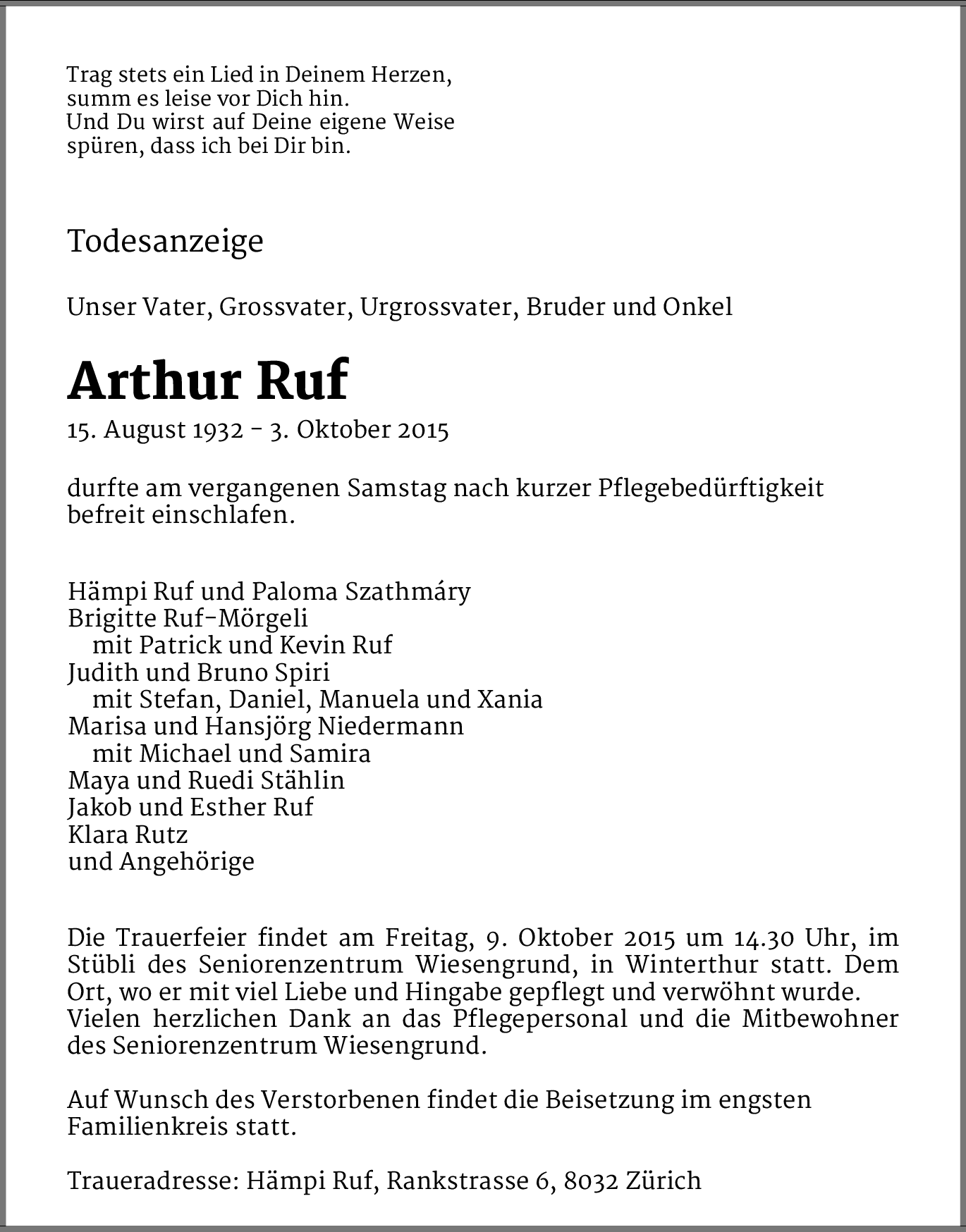 Möchten Sie über neue Todesanzeigen und Kondolenzen für diesen Verstorbenen informiert werden?