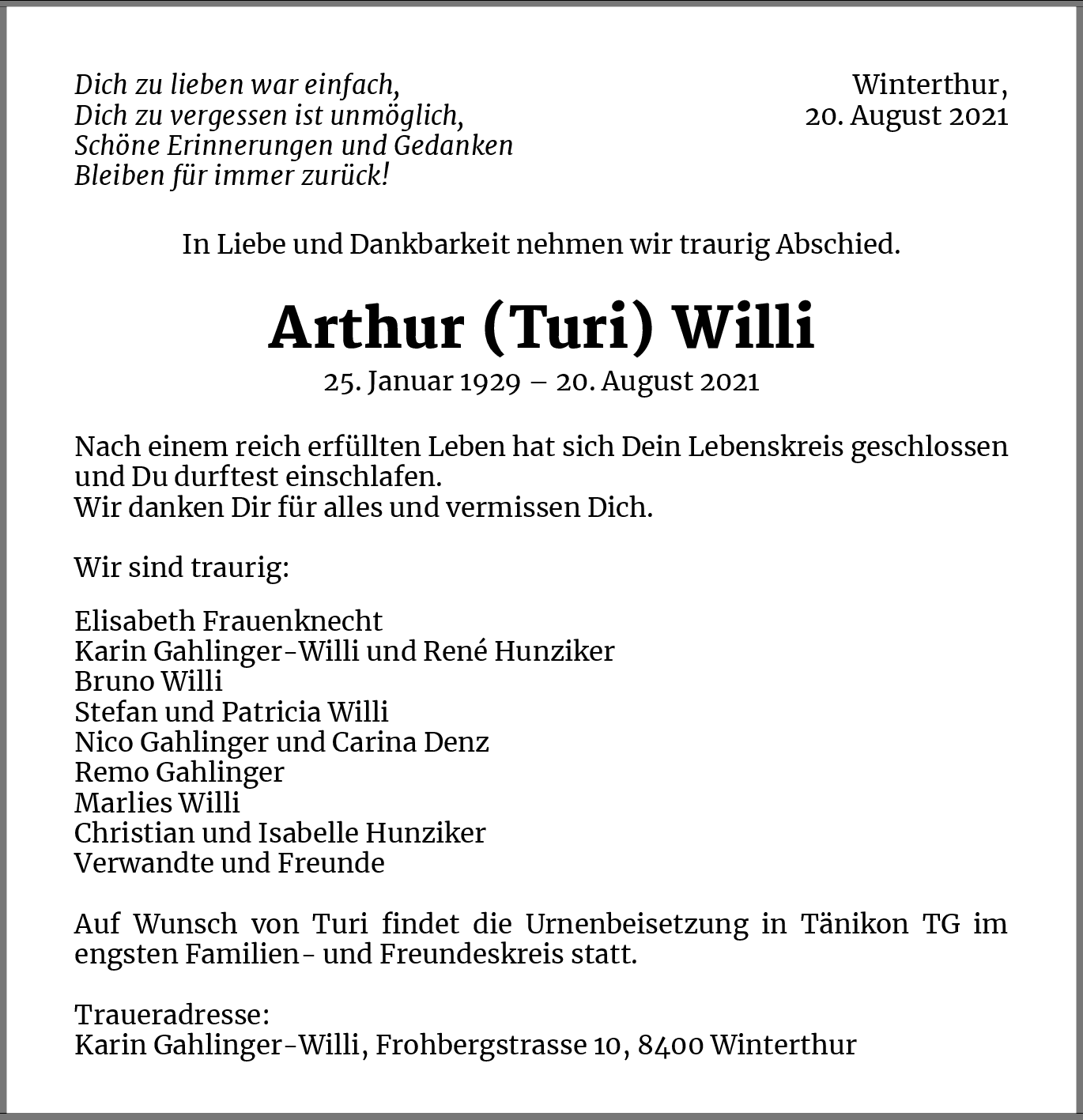 Möchten Sie über neue Todesanzeigen und Kondolenzen für diesen Verstorbenen informiert werden?