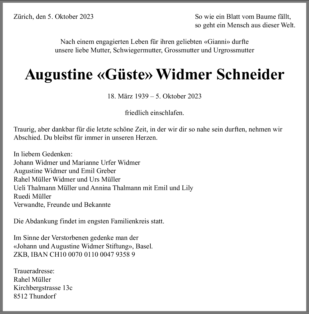 Augustine Widmer Schneider
