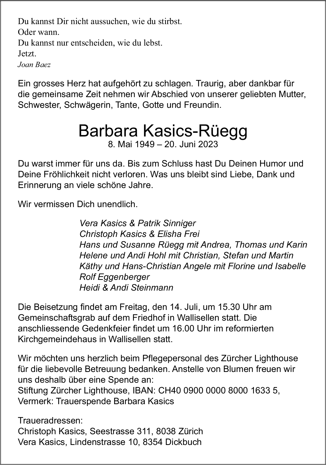 Möchten Sie über neue Todesanzeigen und Kondolenzen für diesen Verstorbenen informiert werden?