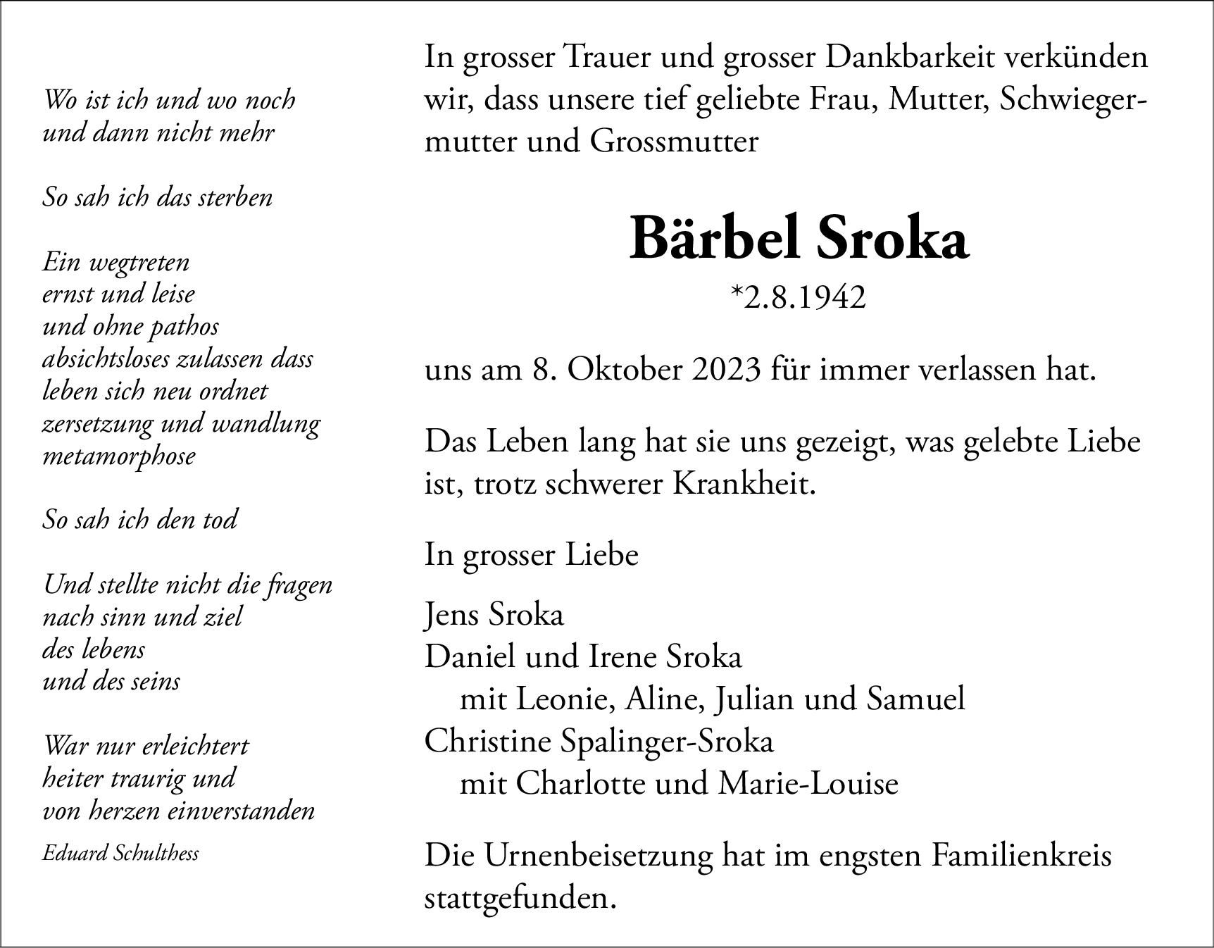 Möchten Sie über neue Todesanzeigen und Kondolenzen für diesen Verstorbenen informiert werden?