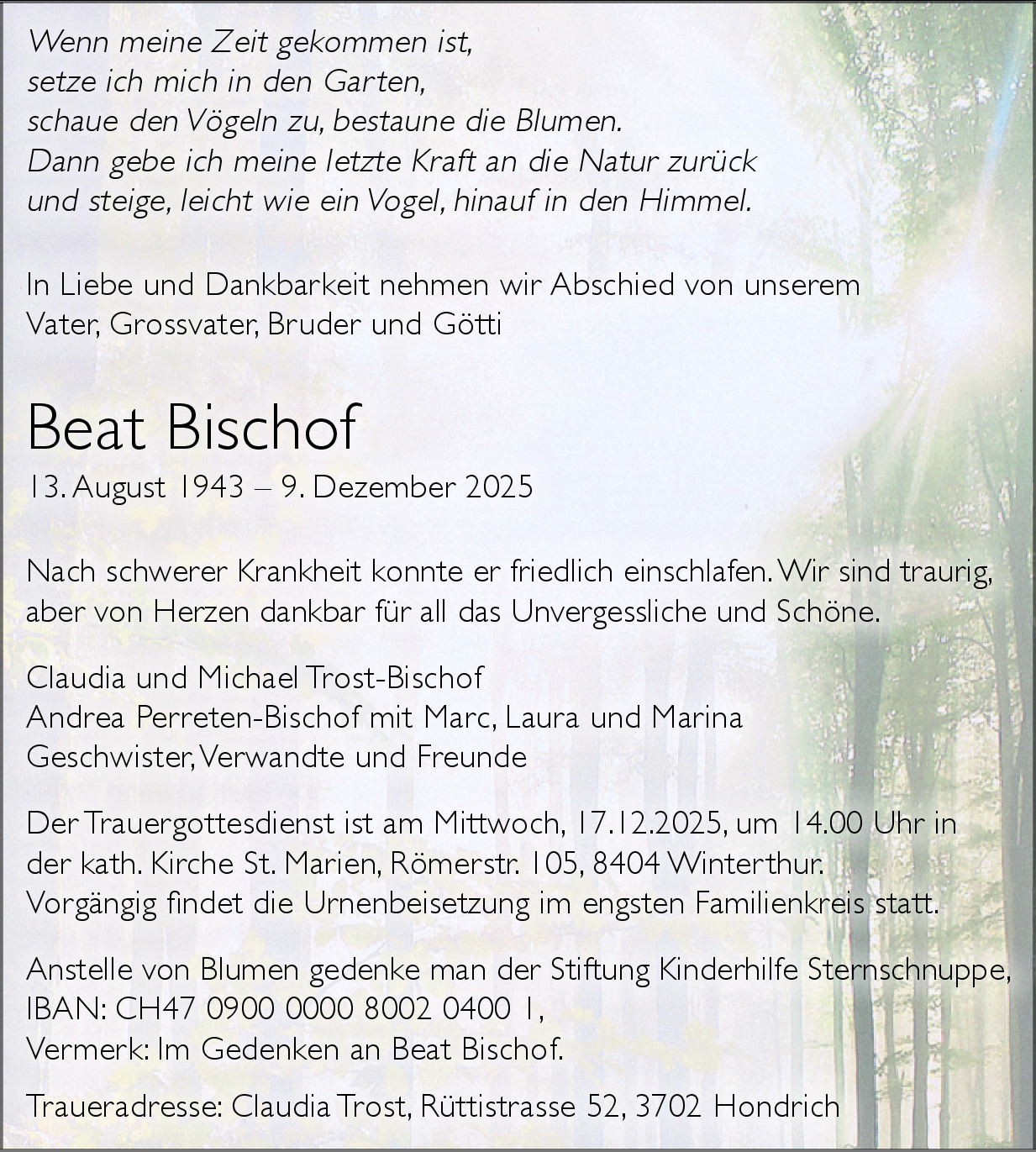 Möchten Sie über neue Todesanzeigen und Kondolenzen für diesen Verstorbenen informiert werden?