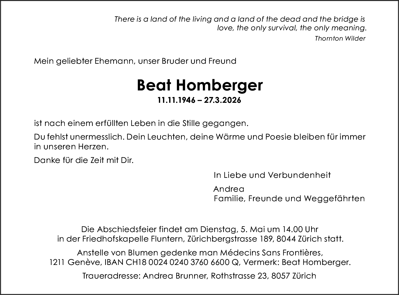 Möchten Sie über neue Todesanzeigen und Kondolenzen für diesen Verstorbenen informiert werden?