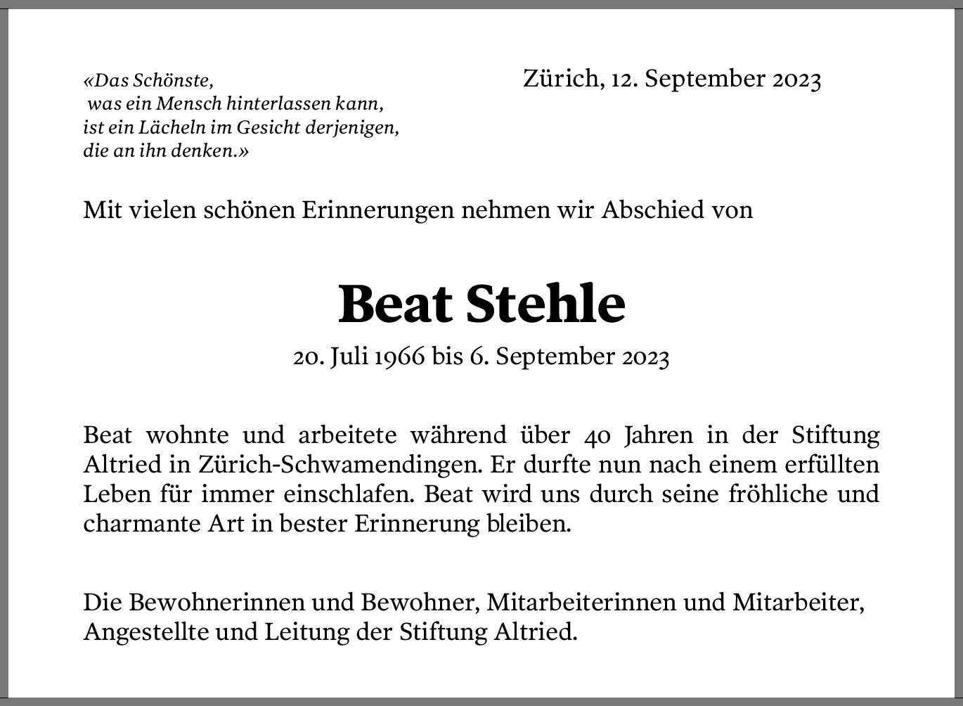 Möchten Sie über neue Todesanzeigen und Kondolenzen für diesen Verstorbenen informiert werden?