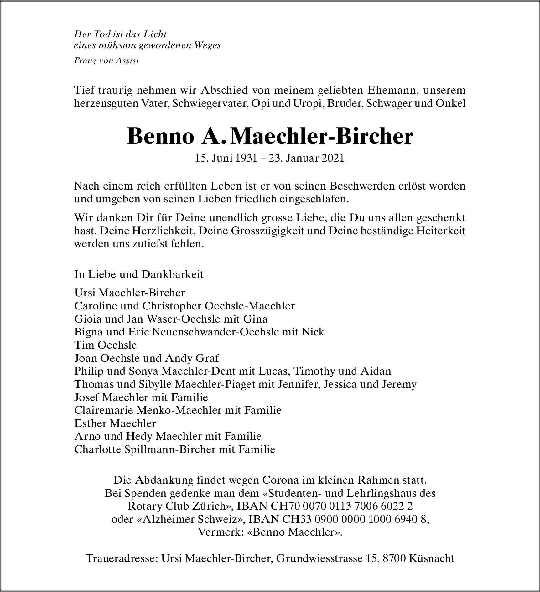 Benno A. Maechler-Bircher