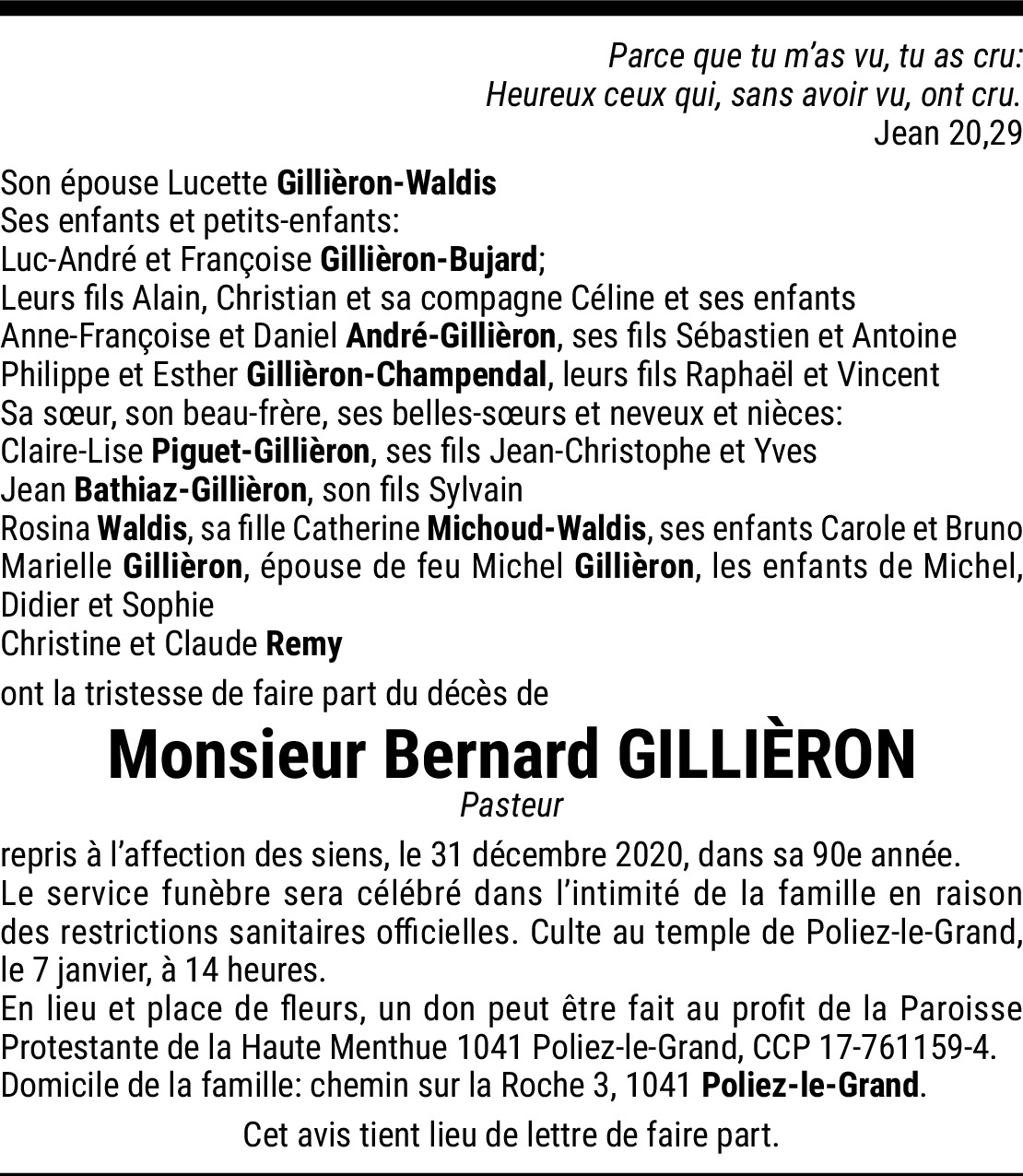 C'est avec beaucoup de peine que nous avons appris le décès de notre ancien pasteur. Nous sommes de tout coeur avec vous et vous exprimons toute notre sympathie.