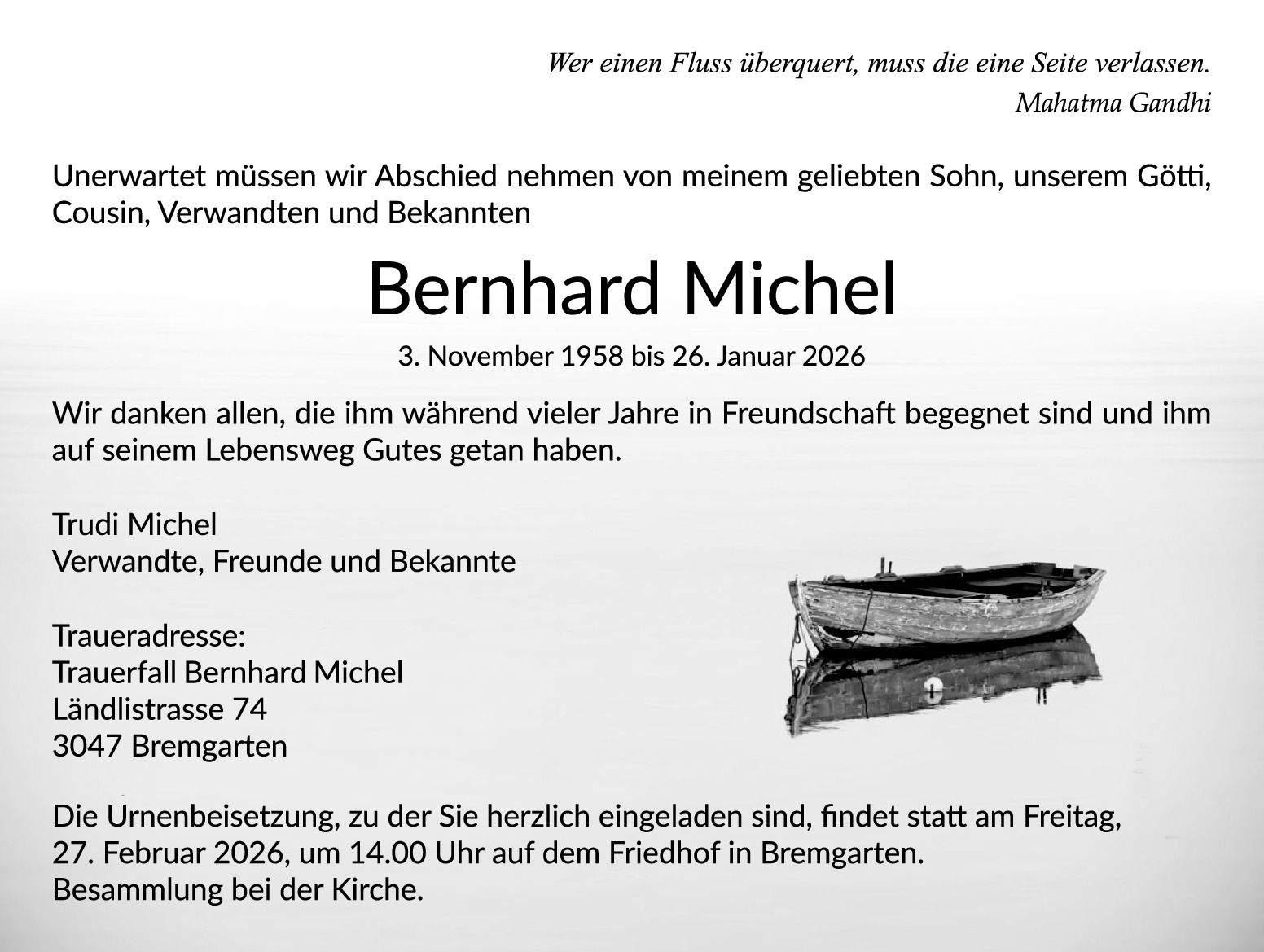Möchten Sie über neue Todesanzeigen und Kondolenzen für diesen Verstorbenen informiert werden?