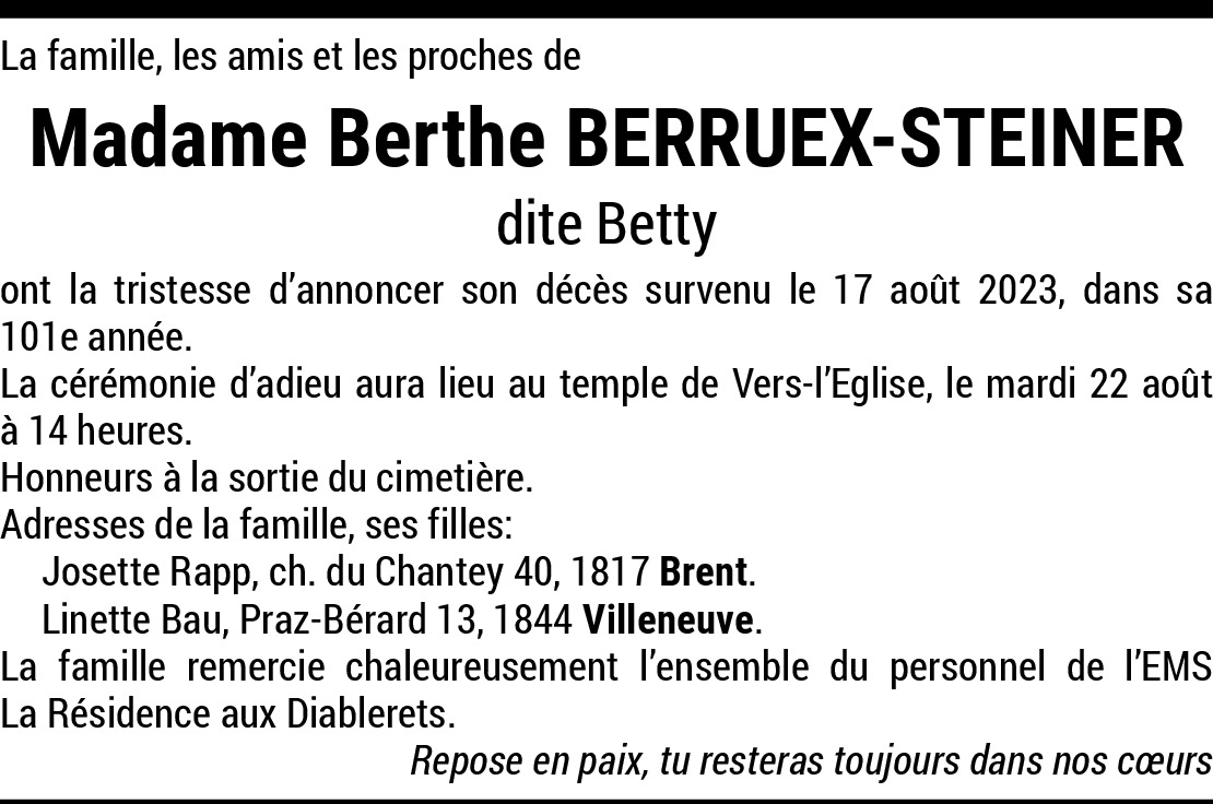 18.08.2023 Melden Chère famille, sincères condoléances à vous tous et toutes nos pensées vous accompagnent en ces jours de tristesse. Particulièrement Josette et Linette. Françoise et Didier Von Vauthey