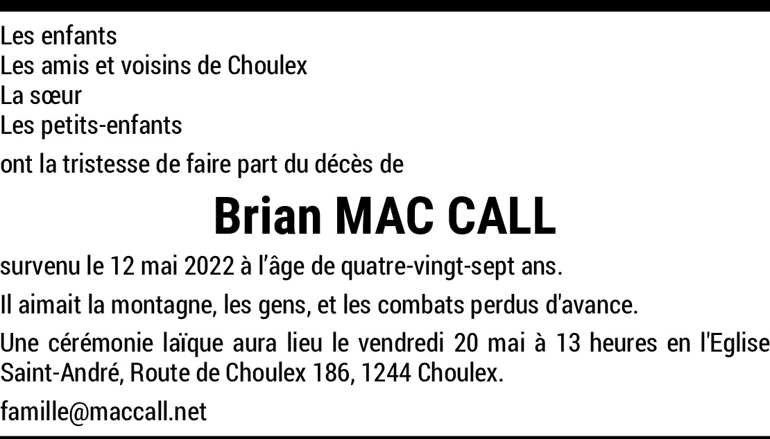 Brian tes amies, tes amis ne t'oublieront jamais. Merci pour ton engagement, ton humour "so...." bon pas d'impair surtout là! Tu nous laisses avec "les combats perdus d'avance", c'était bien ta formule. Tant pis, on continue quand même, cela te fera sourire mais je sens que tu seras encore de la partie! Entre deux sorties en montagne que tu pourras enfin reprendre sans limites. Mes pensées à ta chère famille à qui tu vas terriblement manquer aussi. See you. Ton amie, sincèrement, Rachel