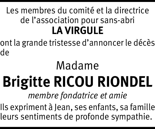Vor mehr als 4 Jahren Melden La Virgule, association pour sans-abri de Lancy, se joint à la douleur ressentie à la suite du départ de Brigitte, membre fondatrice de l'association. Elle adresse ses condoléances à toute sa famille. Von François Baertschi