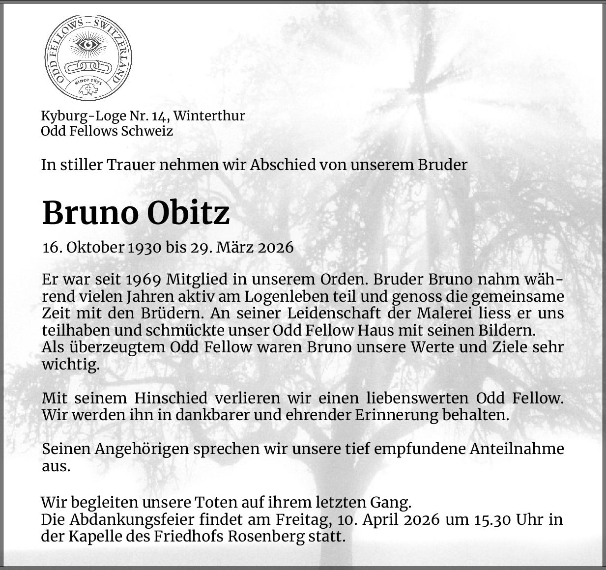 Möchten Sie über neue Todesanzeigen und Kondolenzen für diesen Verstorbenen informiert werden?