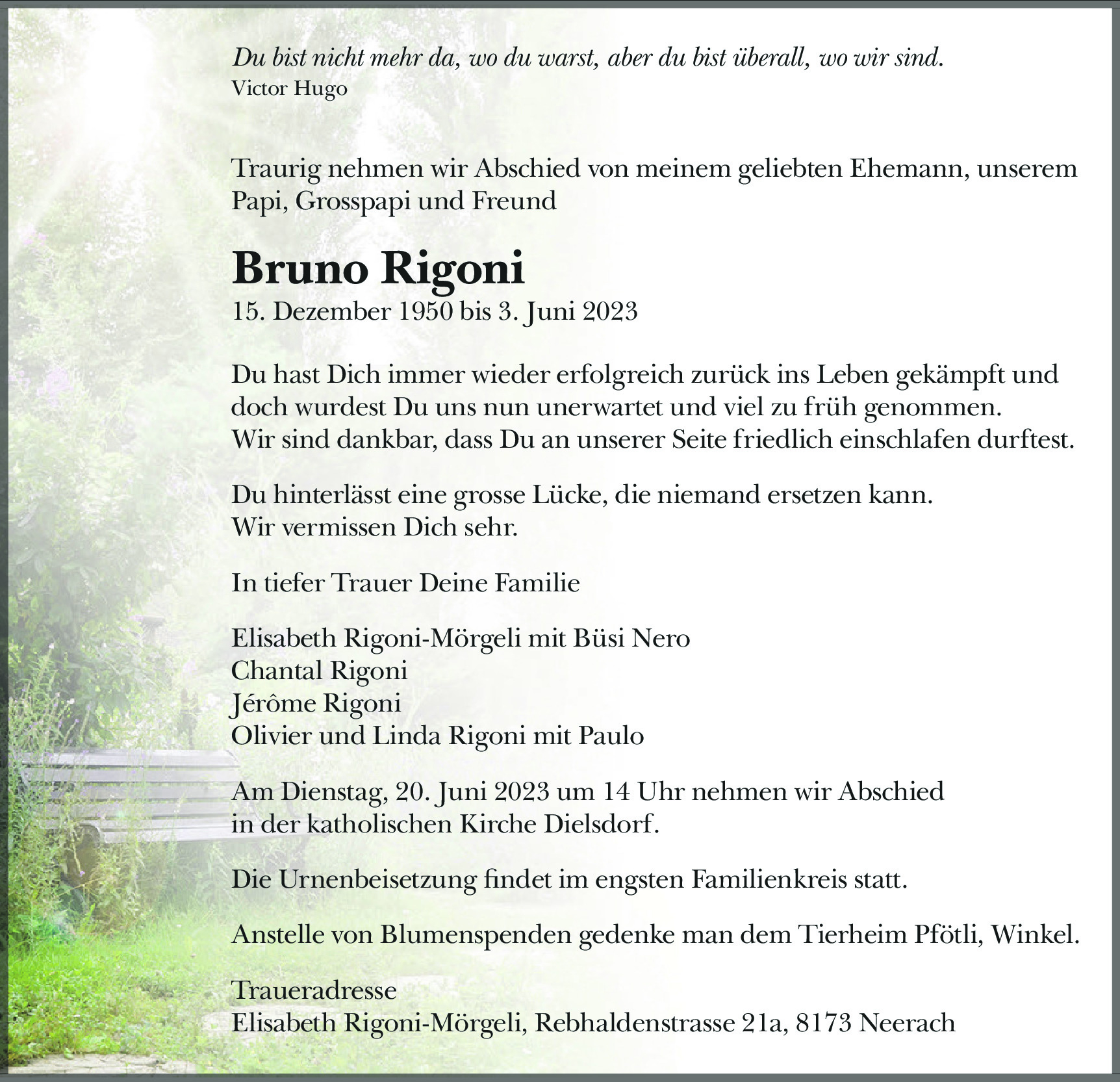 Möchten Sie über neue Todesanzeigen und Kondolenzen für diesen Verstorbenen informiert werden?