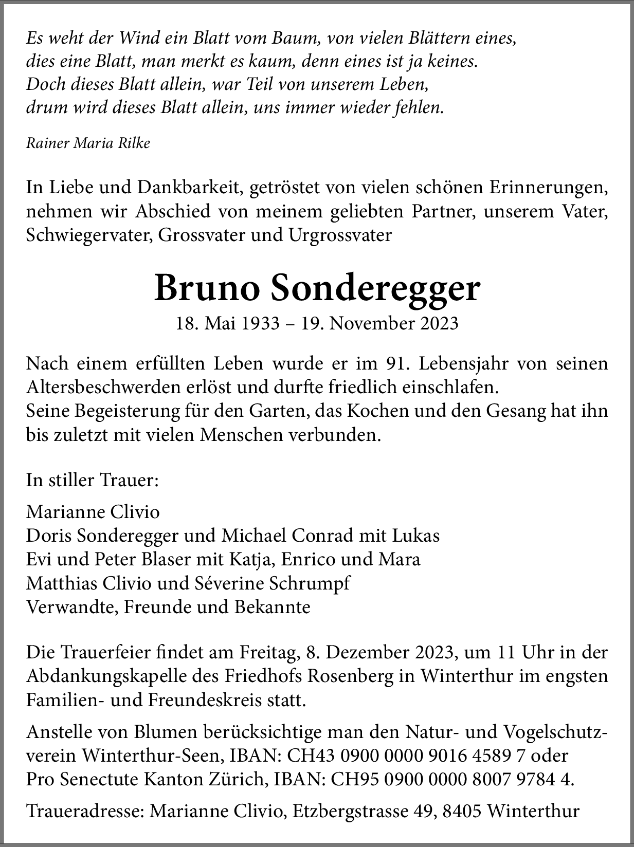 Möchten Sie über neue Todesanzeigen und Kondolenzen für diesen Verstorbenen informiert werden?