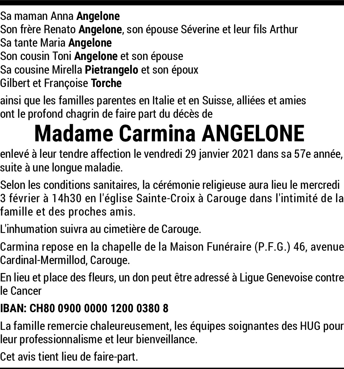 C'est une femme de grande valeur qui nous a quittés, celle de sa famille. Une grande dame.