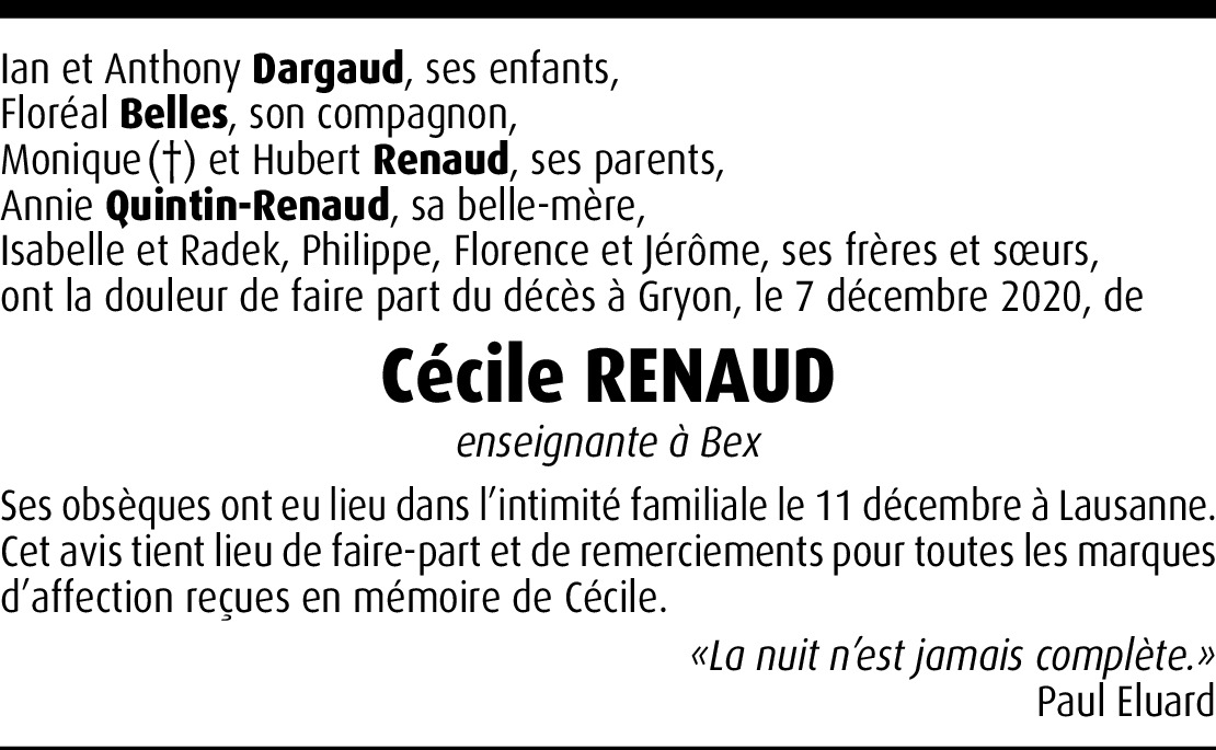 Je pense très fort à vous tous un par un. Cécile restera toujours dans mon cœur. Je n'oublierai jamais sa gentillesse et sa douceur.