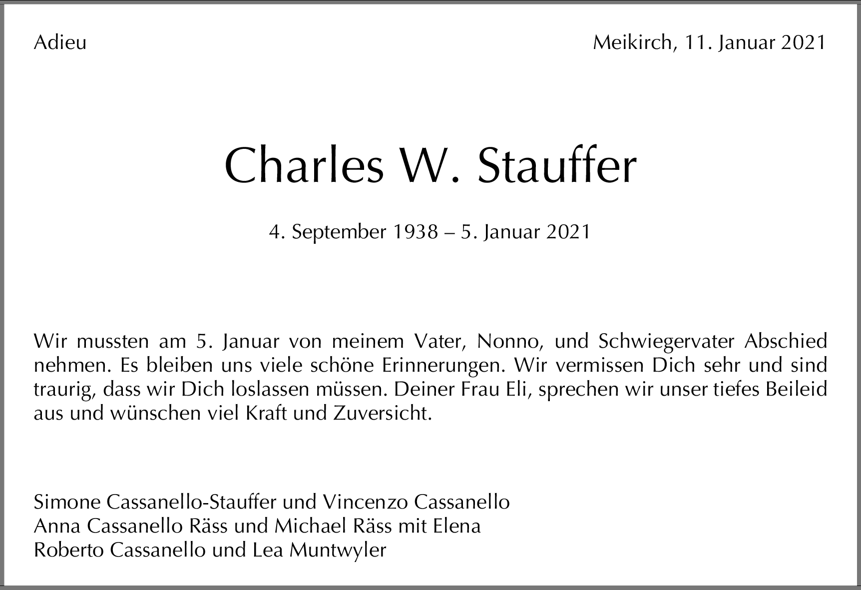 Möchten Sie über neue Todesanzeigen und Kondolenzen für diesen Verstorbenen informiert werden?