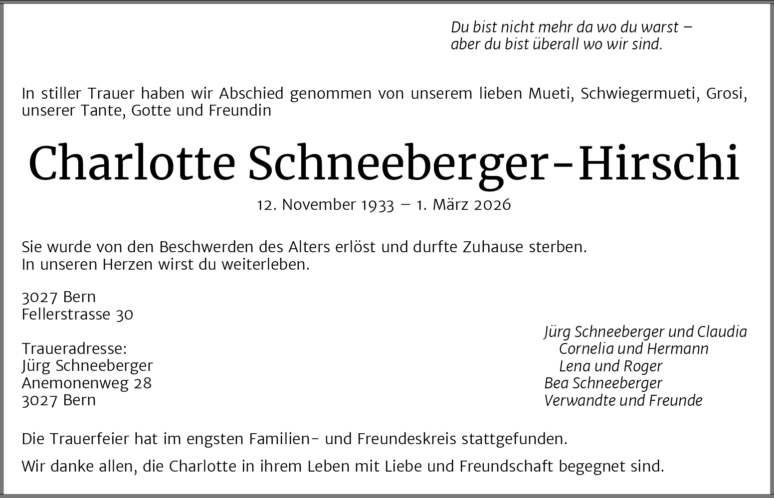 Möchten Sie über neue Todesanzeigen und Kondolenzen für diesen Verstorbenen informiert werden?