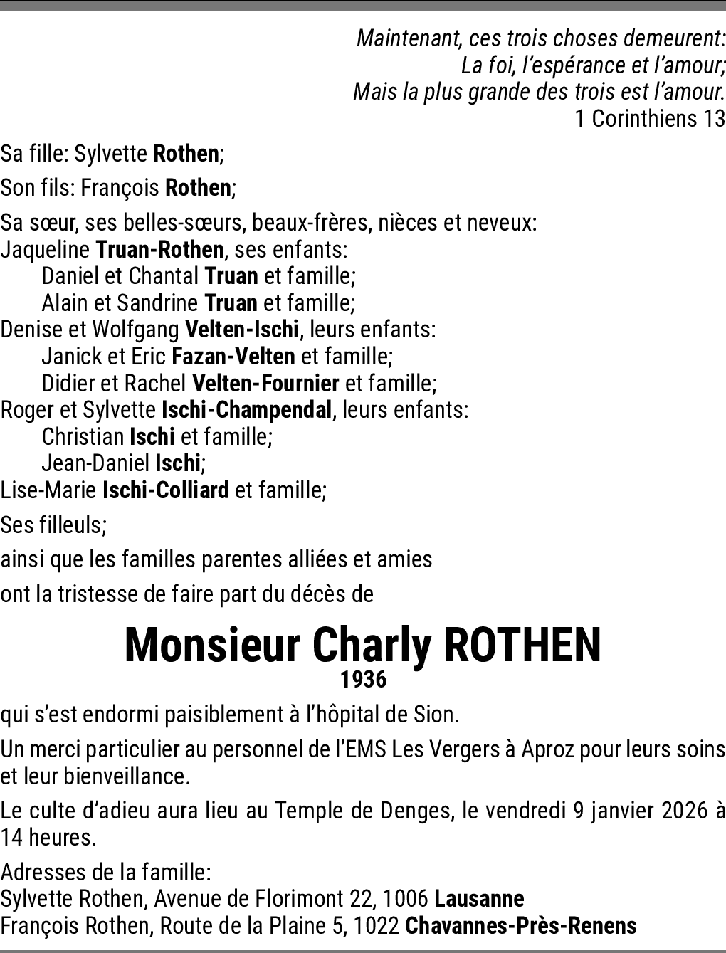 Sylvette, François, vous voilà orphelins.Soyez reconnaissants d avoir pu partager autant d années avec votre cher Papa.Il est en Chemin pour retrouver sa chère épouse et ses amis contemporains de l'Amicale 1936 de Bussigny....mes sincères pensées et condoléances vous accompagnent en ces difficiles jours d Adieu. Danièle, de feu Marc et feue Lolo