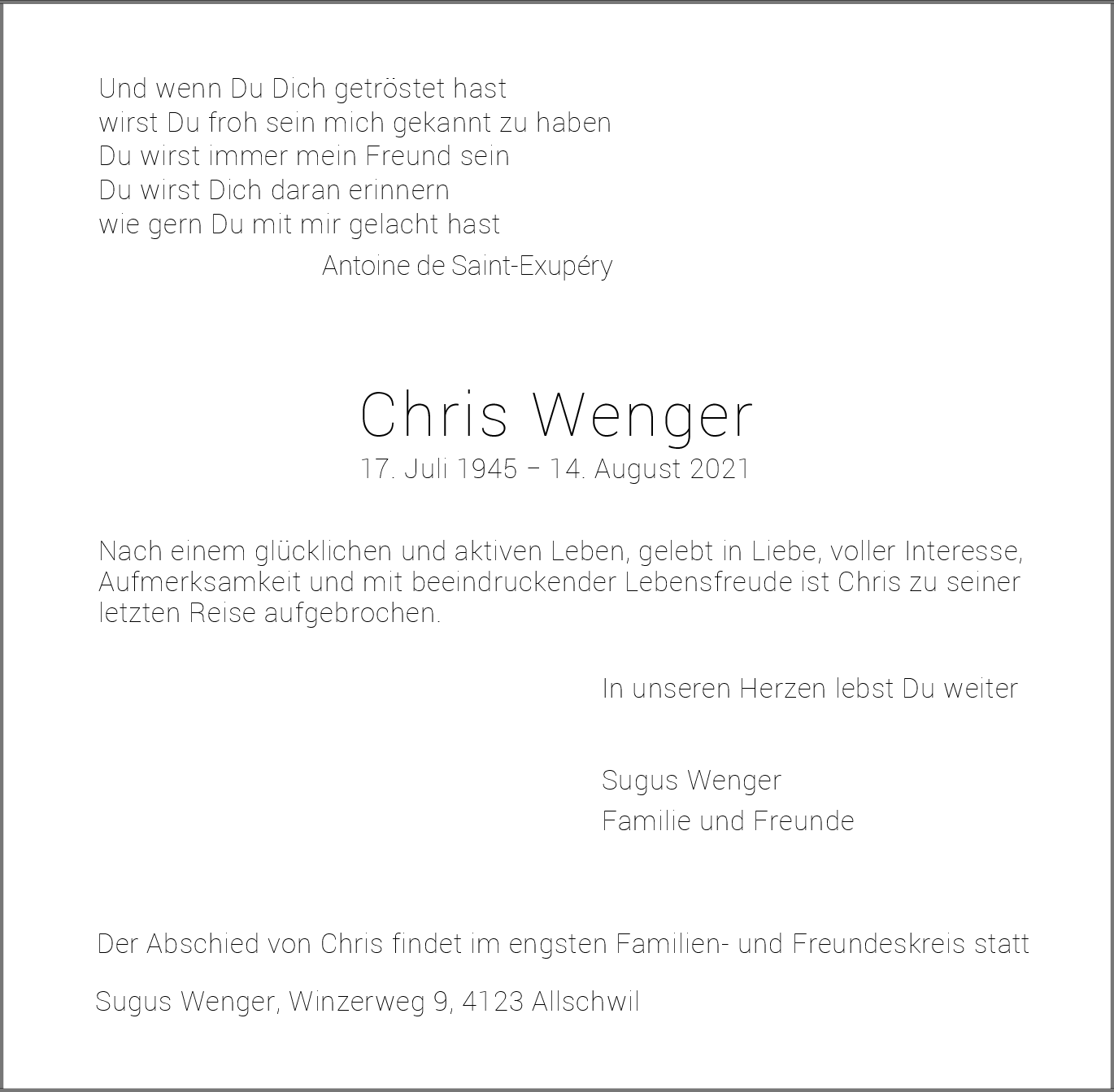 Möchten Sie über neue Todesanzeigen und Kondolenzen für diesen Verstorbenen informiert werden?