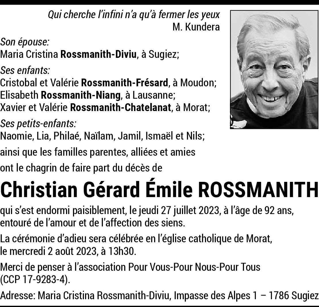 31.07.2023 Melden Chère famille, nous sommes en pensées avec vous en ces moments pénibles et sincères condoléances. Von Chappuis