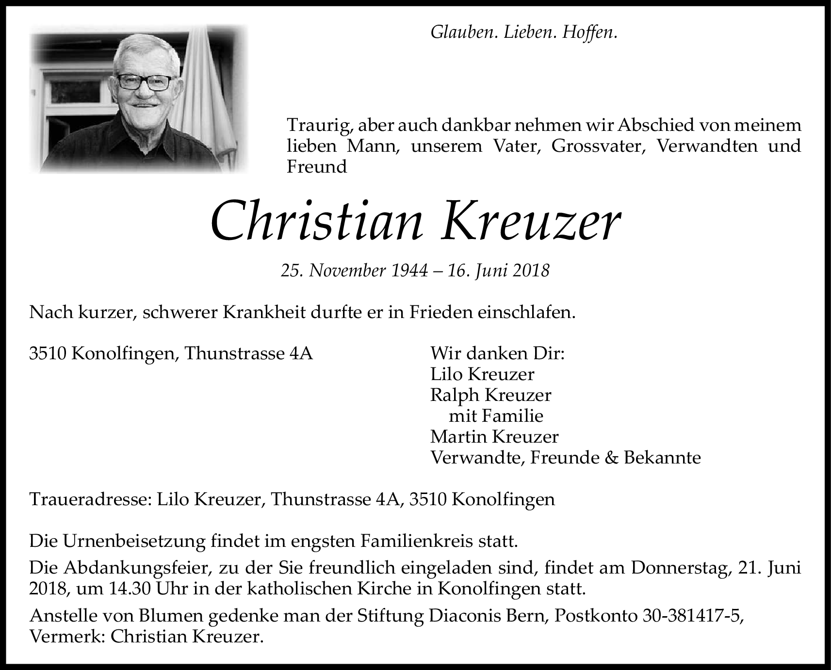 Möchten Sie über neue Todesanzeigen und Kondolenzen für diesen Verstorbenen informiert werden?