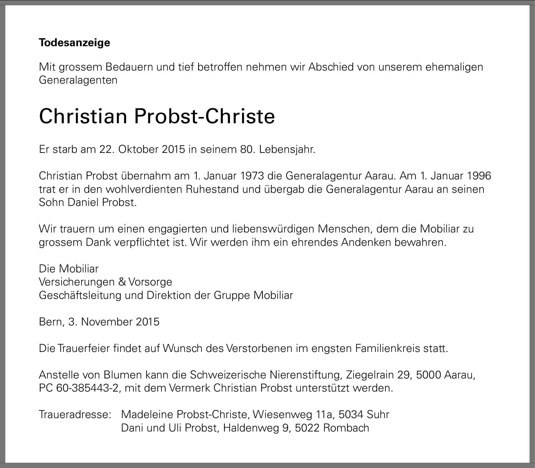 Möchten Sie über neue Todesanzeigen und Kondolenzen für diesen Verstorbenen informiert werden?