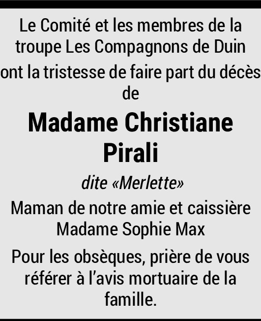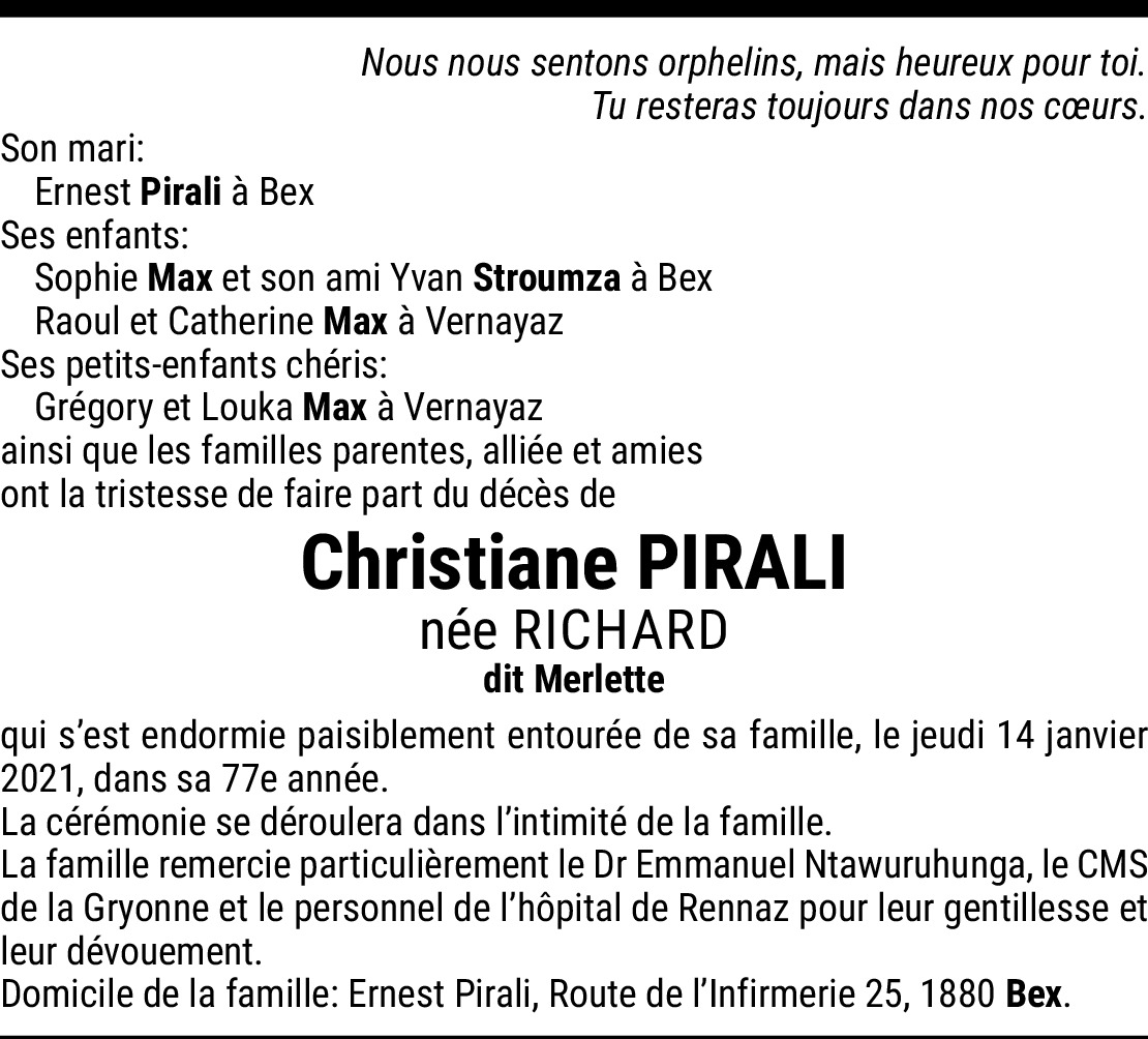 Vor mehr als 4 Jahren Melden Cher Ernest, je suis de tout coeur avec toi et te présente toute ma sympathie en ces instants si douloureux. Amicalement. Arnold Von Arnold Schenk